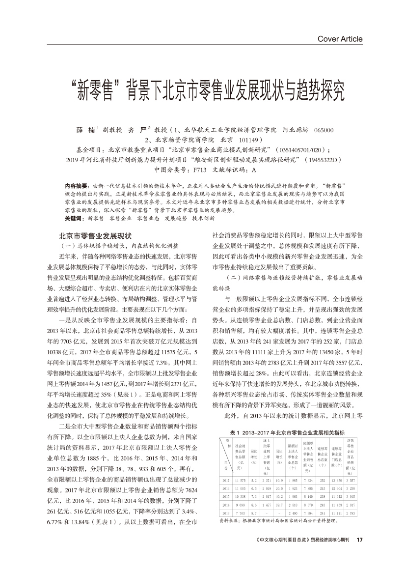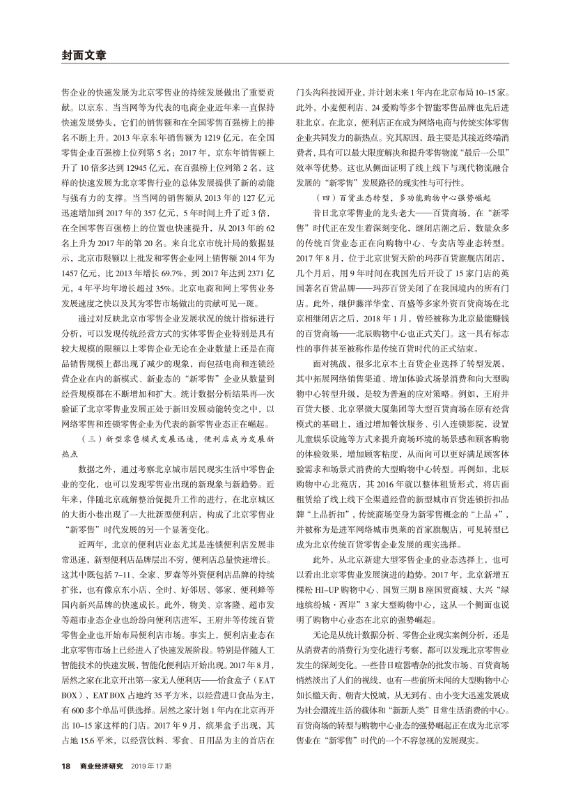 | “新零售”背景下北京市零售业发展现状与趋势探究 |