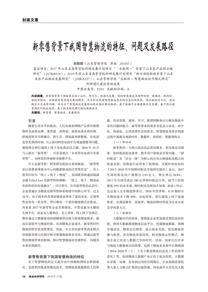 | 新零售背景下我国智慧物流的特征、问题及发展路径 |