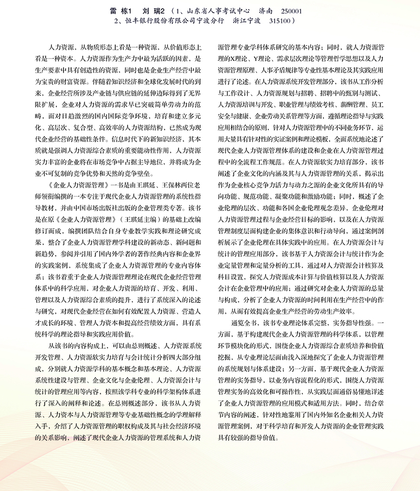 | 人力资源管理的企业决胜之道 —《企业人力资源管理》述评 |