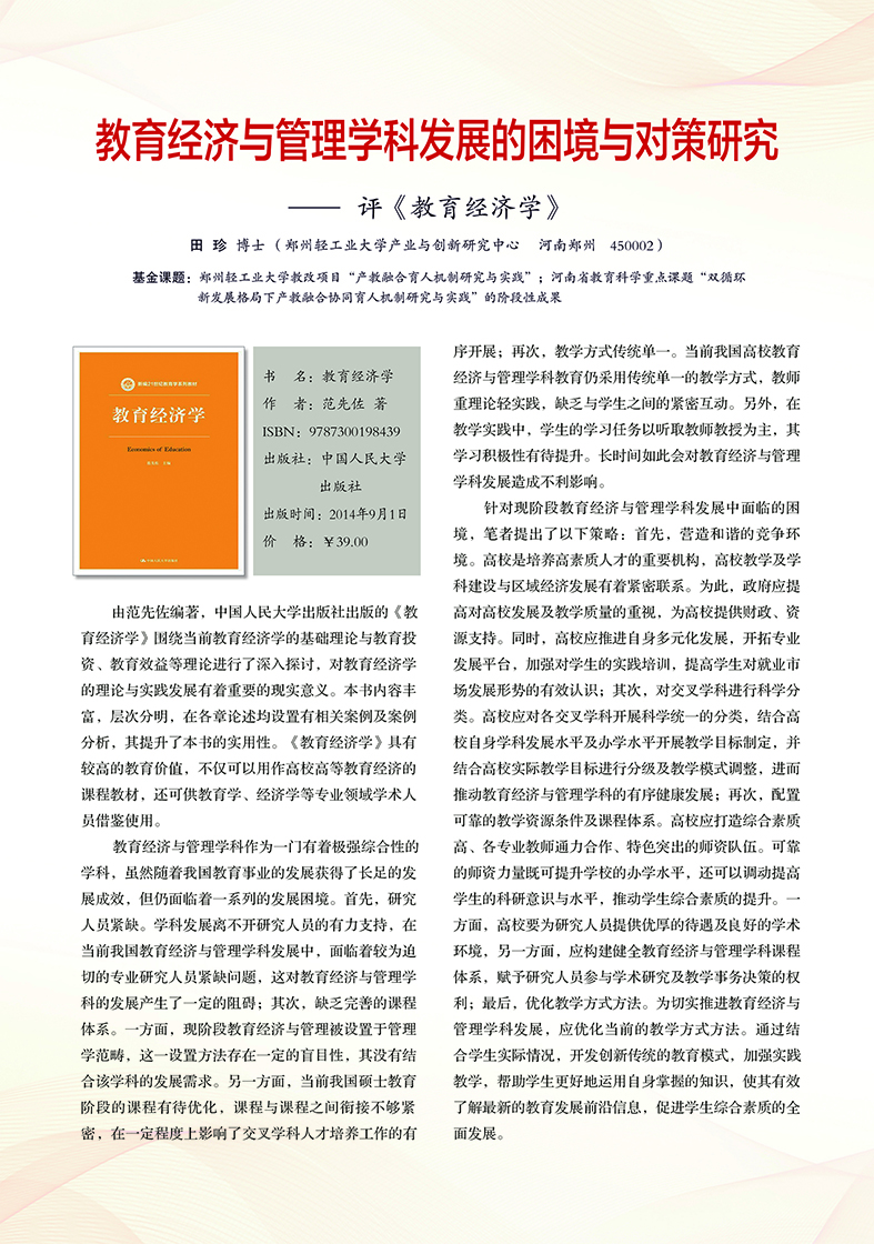 | 教育经济与管理学科发展的困境与对策研究——评《教育经济学》 |