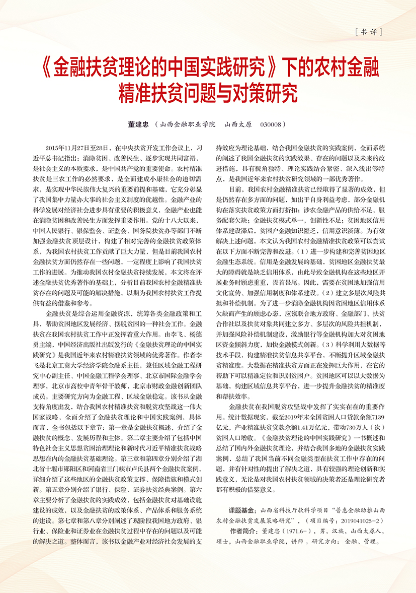 | 《金融扶贫理论的中国实践研究》下的农村金融精准扶贫问题与对策研究 |