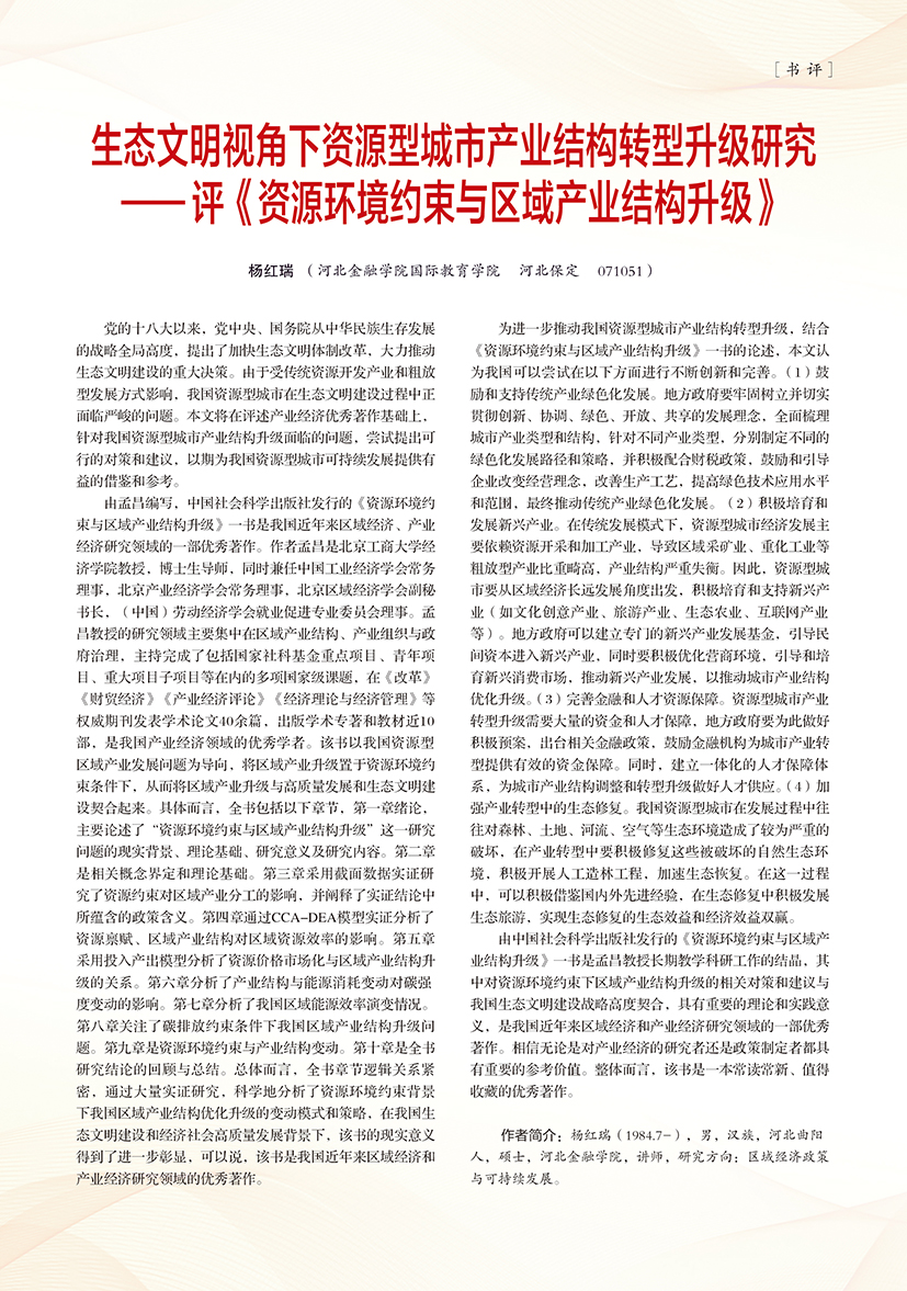 | 生态文明视角下资源型城市产业结构转型升级研究 ——评《资源环境约束与区域产业结构升级》 |