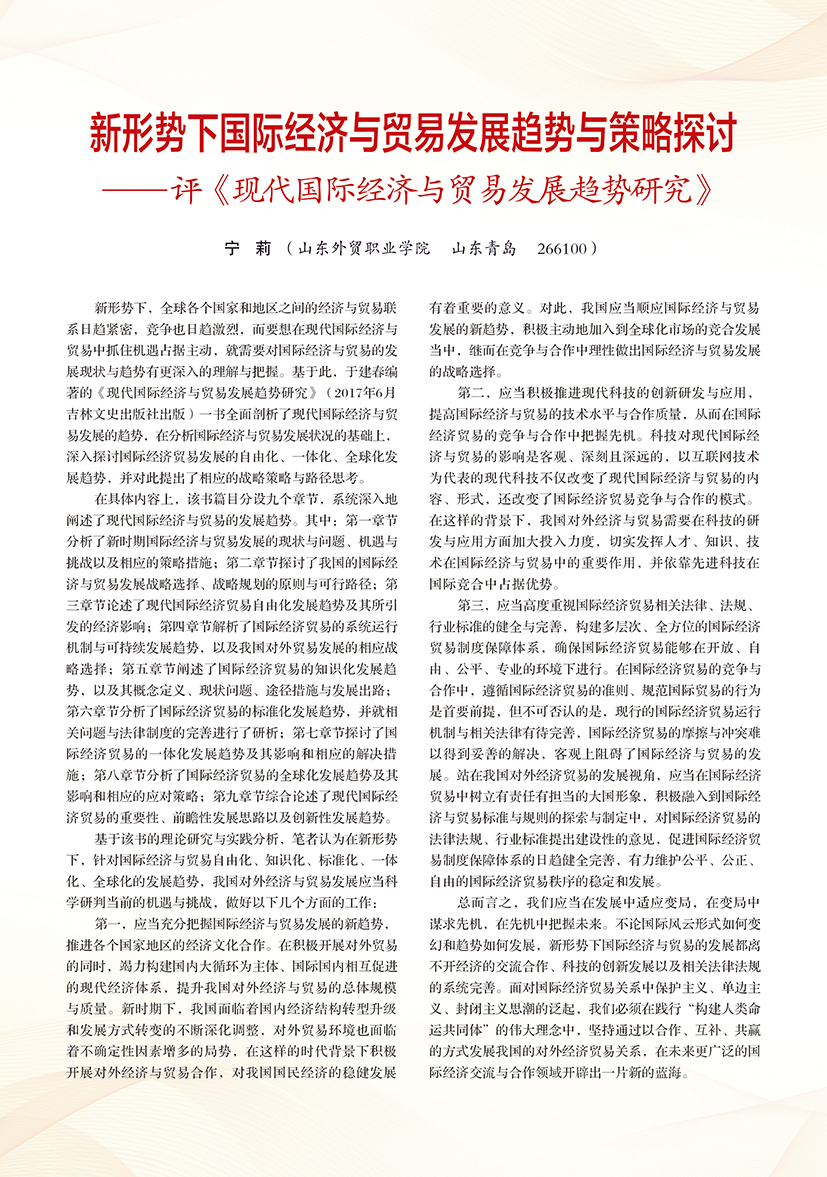 | 新形势下国际经济与贸易发展趋势与策略探讨 ——评《现代国际经济与贸易发展趋势研究》 |