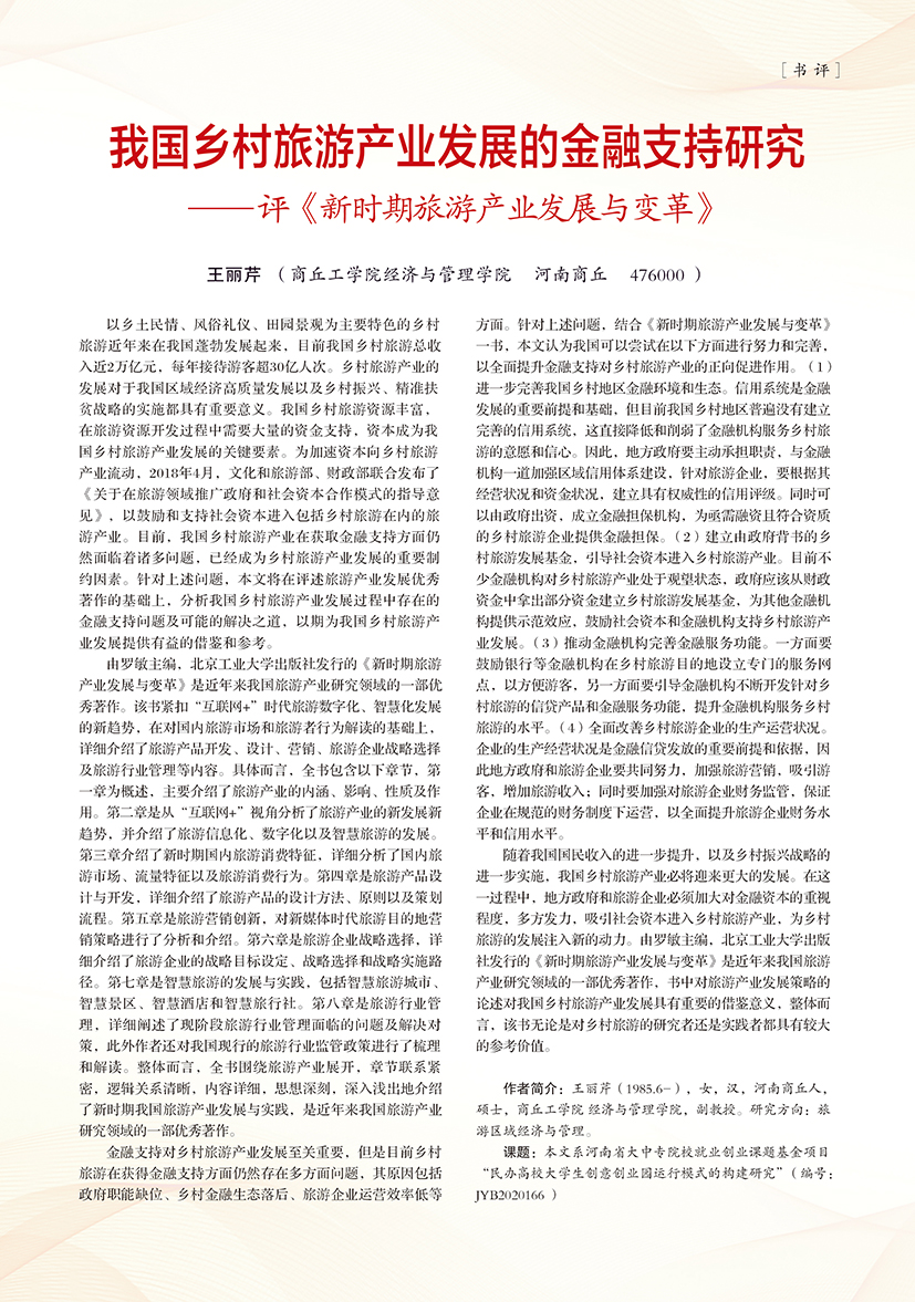| 我国乡村旅游产业发展的金融支持研究 —— 评《新时期旅游产业发展与变革》 |