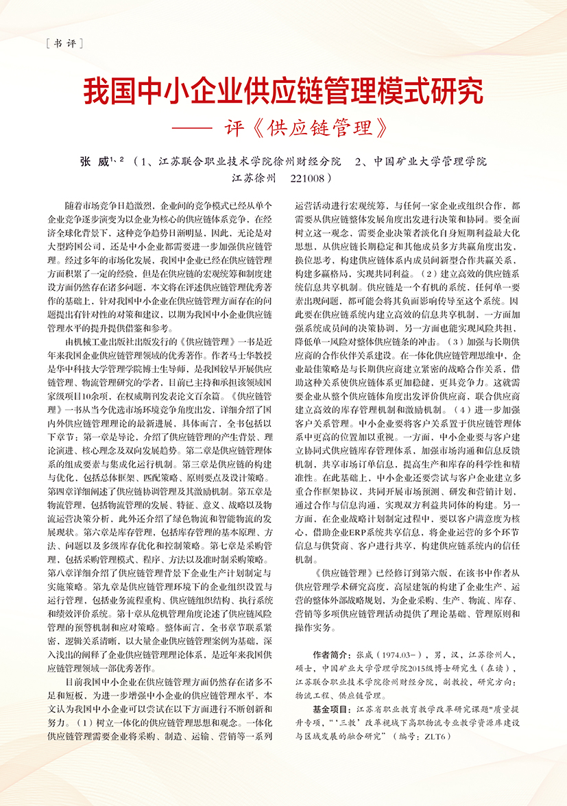 | 我国中小企业供应链管理模式研究—评《供应链管理》 |