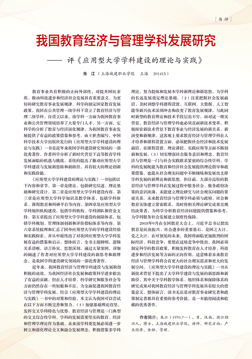 | 我国教育经济与管理学科发展研究——评《应用型大学学科建设的理论与实践》 |