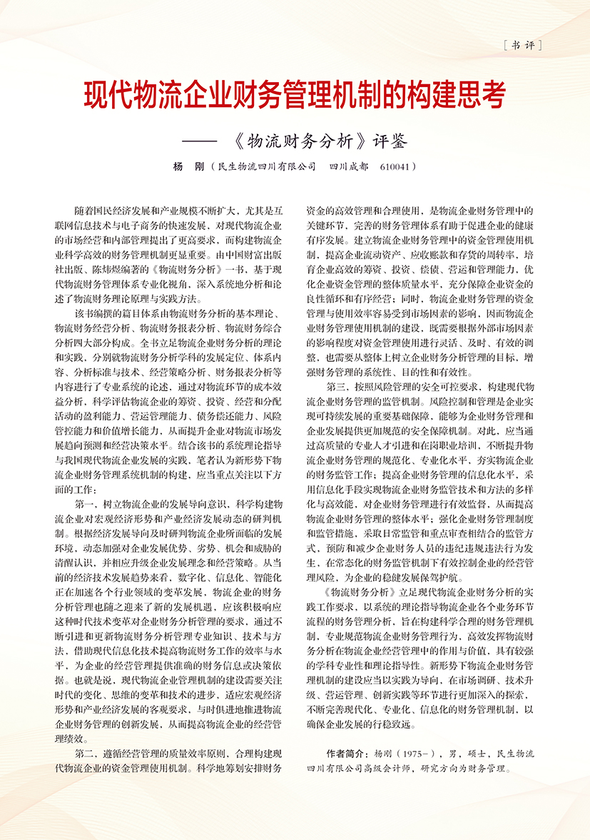 | 现代物流企业财务管理机制的构建思考——《物流财务分析》评鉴 |