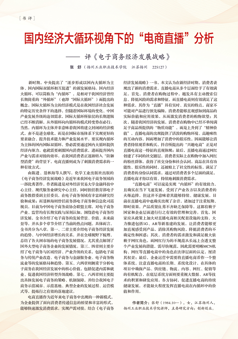 | 国内经济大循环视角下的“电商直播”分析 —— 评《电子商务经济发展战略》 |