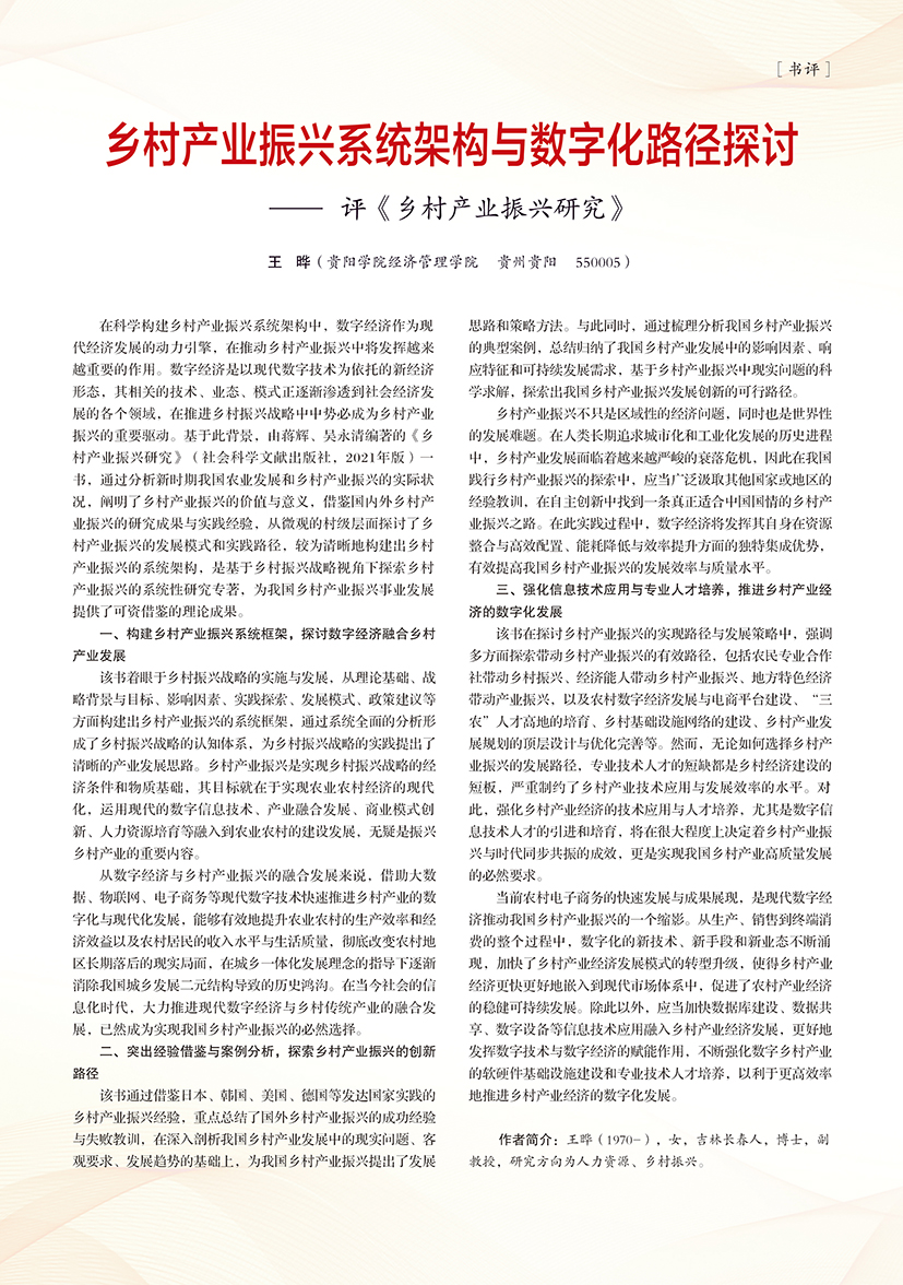 | 乡村产业振兴系统架构与数字化路径探讨 ——评《乡村产业振兴研究》 |