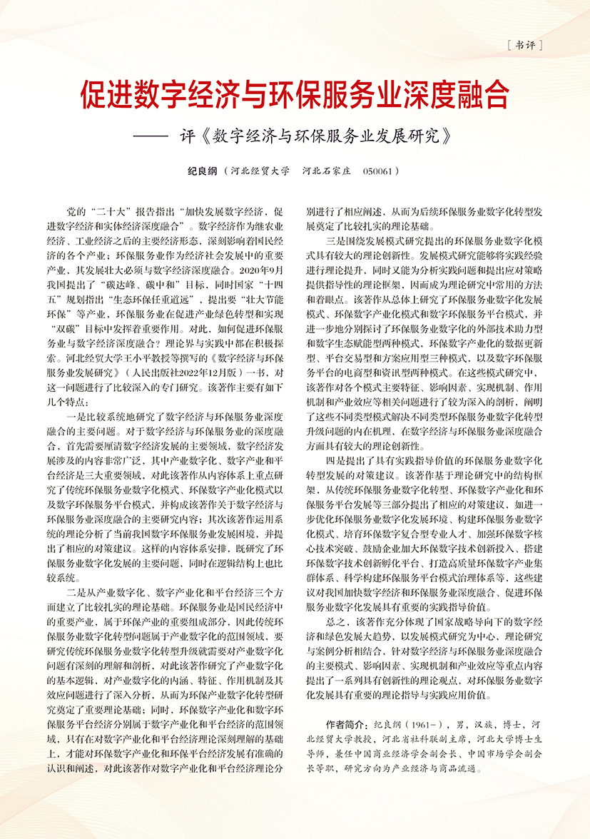 | 促进数字经济与环保服务业深度融合 —— 评《数字经济与环保服务业发展研究》 |