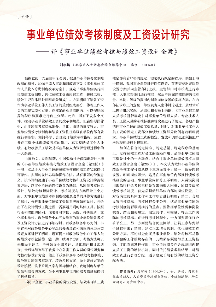 | 事业单位绩效考核制度及工资设计研究 —— 评《事业单位绩效考核与绩效工资设计全案》 |