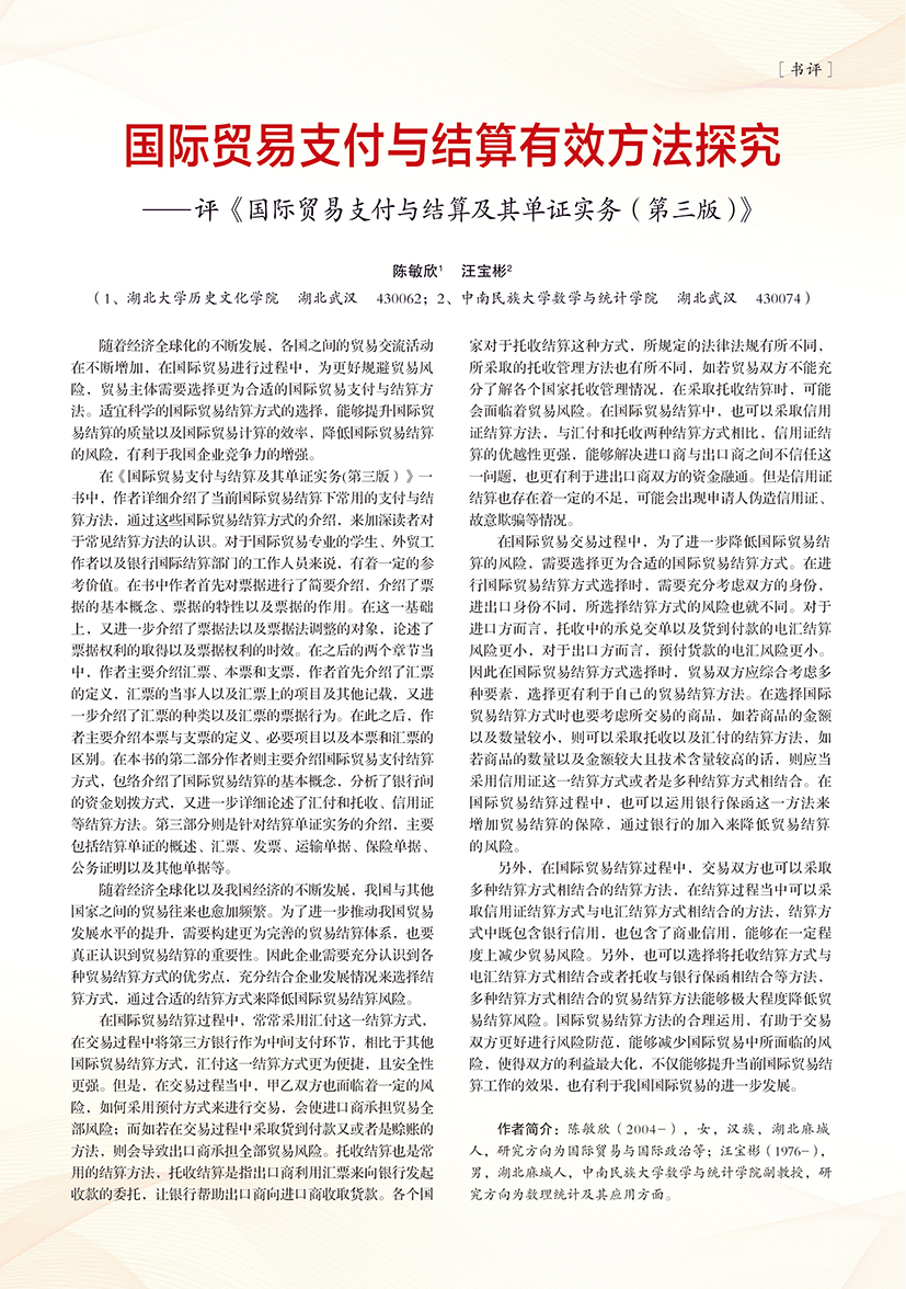 | 国际贸易支付与结算有效方法探究 —— 评《国际贸易支付与结算及其单证实务(第三版)》 |