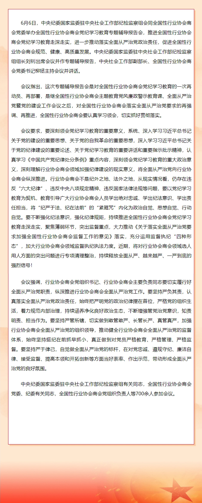 | 中央纪委国家监委驻中央社会工作部 纪检监察组、全国性行业协会商会党委举办 全国性行业协会商会党纪学习教育专题辅导报告会 |
