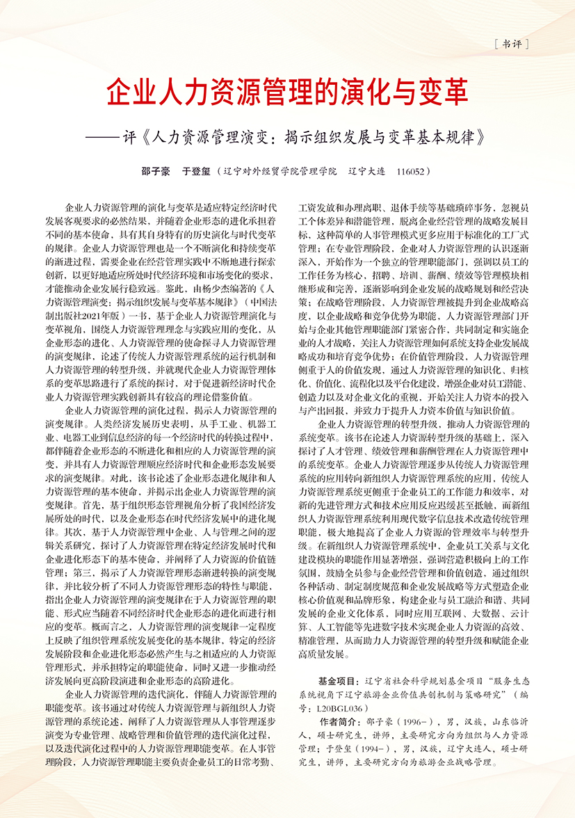 | 企业人力资源管理的演化与变革——评《人力资源管理演变:揭示组织发展与变革基本规则》 |