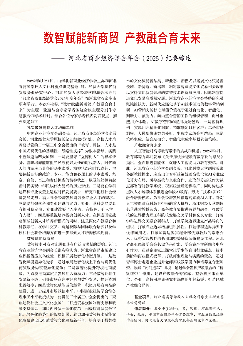 | 数智赋能新商贸 产教融合育未来——河北省商业经济学会年会(2025)纪要综述 |