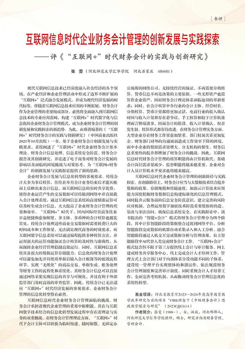 | 互联网信息时代企业财务会计管理的创新发展与实践探索 ——评《“互联网+”时代财务会计的实践与创新研究》 |