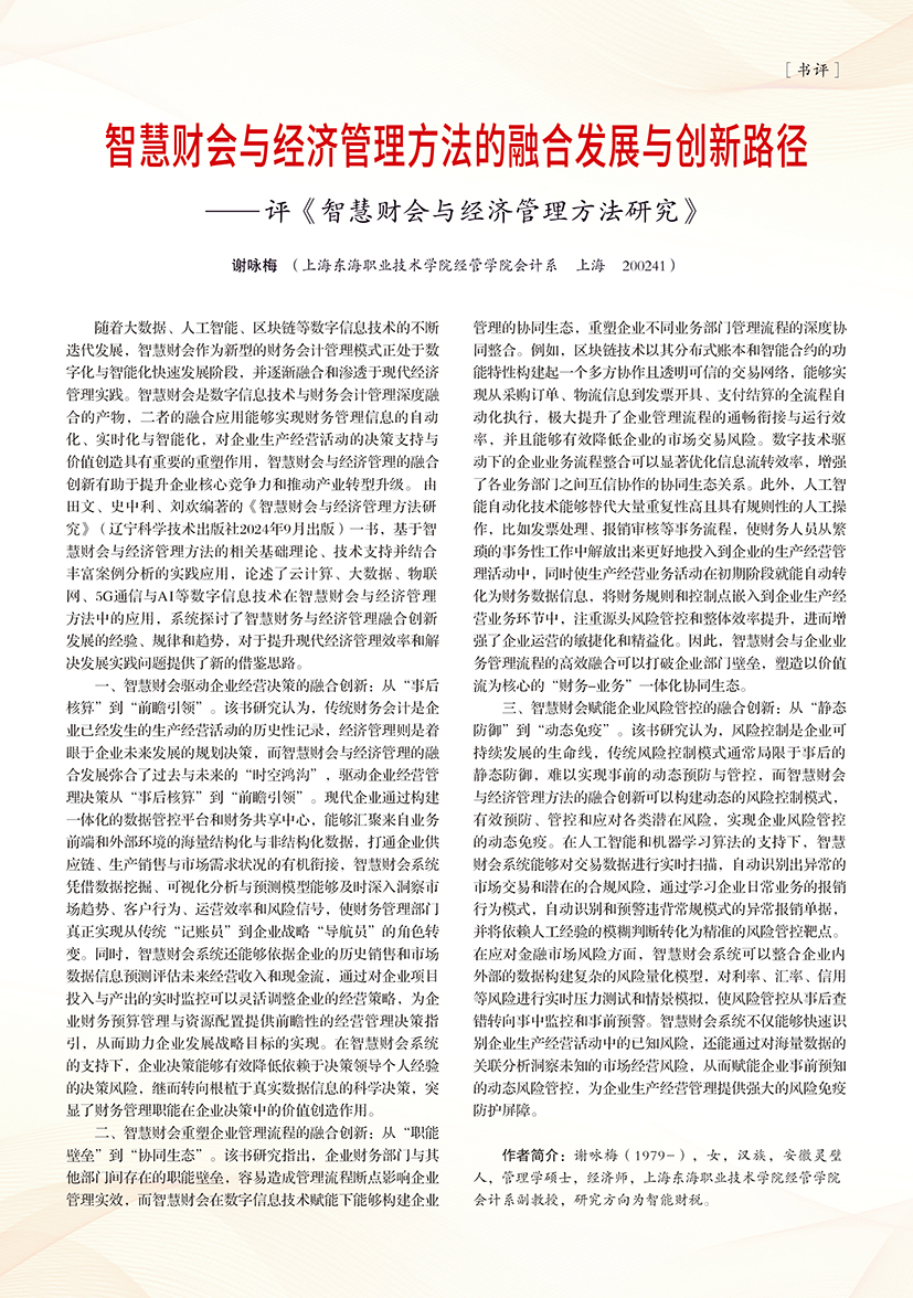 | 智慧财会与经济管理方法的融合发展与创新路径 ——评《智慧财会与经济管理方法研究》 |