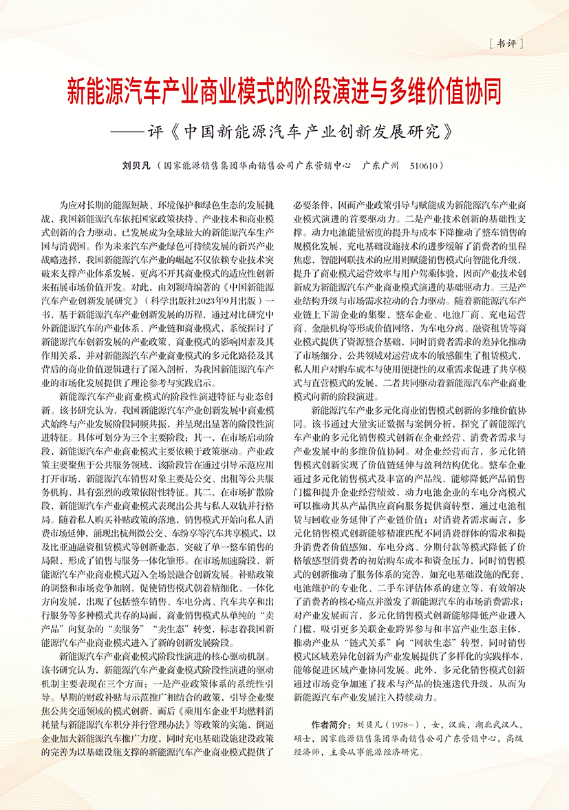| 新能源汽车产业商业模式的阶段演进与多维价值协同 ——评《中国新能源汽车产业创新发展研究》 |