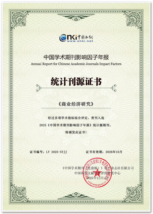 由《商业经济研究》杂志社有限责任公司出版的《商业经济研究》创刊于1982年,是原国家商业部创办的国家一级商业经济类学术期刊,是我国商贸流通领域的重要学术阵地。期刊创办30余年,为传播商业前沿理论、促进流通创新发展、推动商贸流通变革发挥了重要作用,在行业内和学界具有重要影响力。期刊多次入选“CSSCI来源核心期刊”、长期入选“《中文核心期刊要目总览》贸易经济类核心期刊”,系《中国知识资源总库社会科学期刊精品库》、《万方数据-数字化期刊群》、《中国人文社会科学期刊评价报告(AMI)》、《维普中文科技期刊数据库》等收录期刊,中国人民大学书报资料中心复印报刊资料分类转载量排名前茅期刊,2023年继续入编最新版北京大学《中文核心期刊要目总览》目录,系贸易经济类核心期刊。