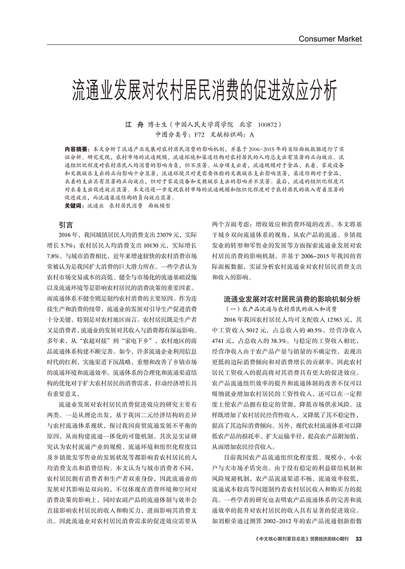 由《商业经济研究》杂志社有限责任公司出版的《商业经济研究》创刊于1982年,是原国家商业部创办的国家一级商业经济类学术期刊,是我国商贸流通领域的重要学术阵地。期刊创办30余年,为传播商业前沿理论、促进流通创新发展、推动商贸流通变革发挥了重要作用,在行业内和学界具有重要影响力。期刊多次入选“CSSCI来源核心期刊”、长期入选“《中文核心期刊要目总览》贸易经济类核心期刊”,系《中国知识资源总库社会科学期刊精品库》、《万方数据-数字化期刊群》、《中国人文社会科学期刊评价报告(AMI)》、《维普中文科技期刊数据库》等收录期刊,中国人民大学书报资料中心复印报刊资料分类转载量排名前茅期刊,2023年继续入编最新版北京大学《中文核心期刊要目总览》目录,系贸易经济类核心期刊。