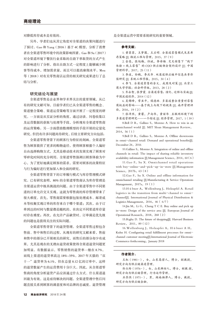 全渠道零售研究述评与展望