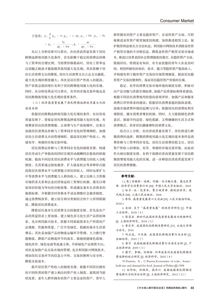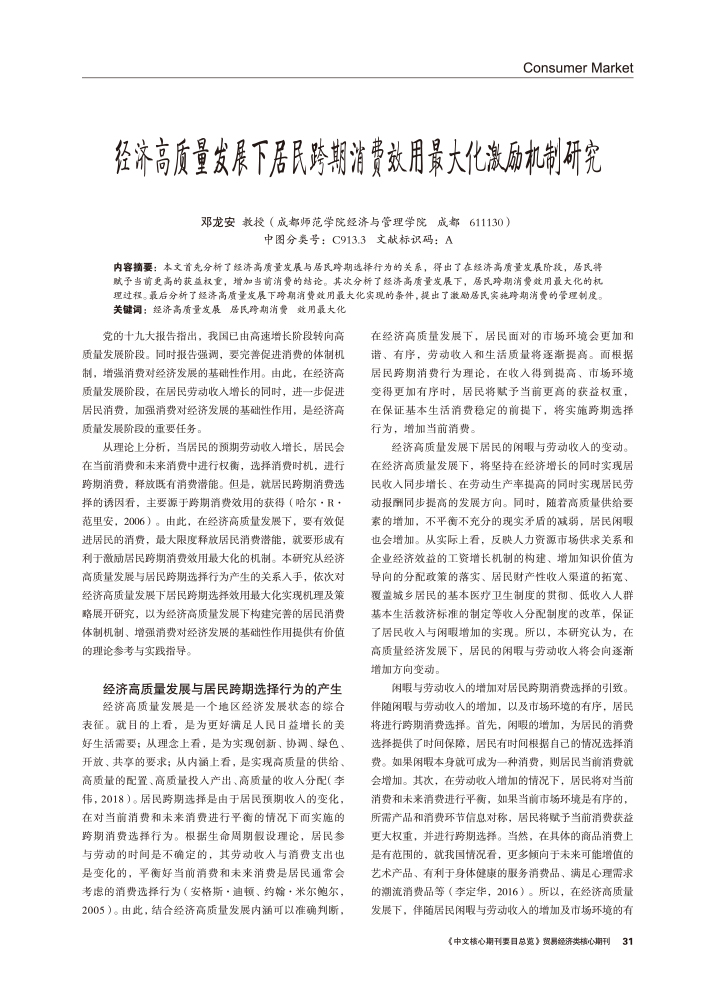 | 经济高质量发展下居民跨期消费效用最大化激励机制研究 |