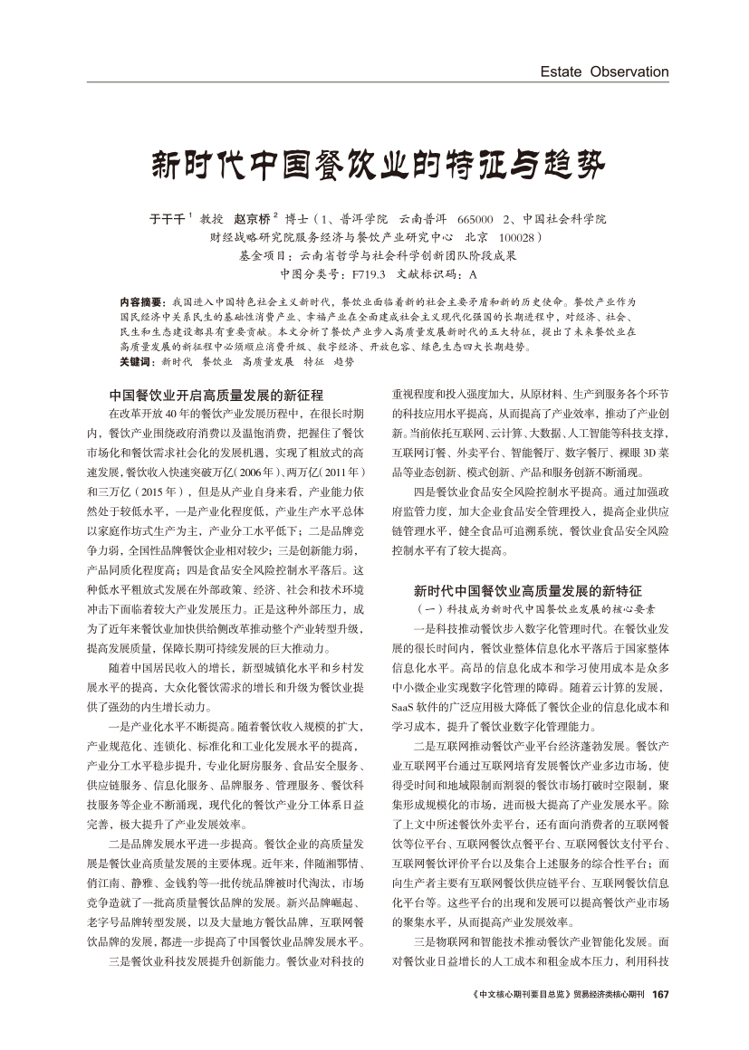 新时代中国餐饮业的特征与趋势
