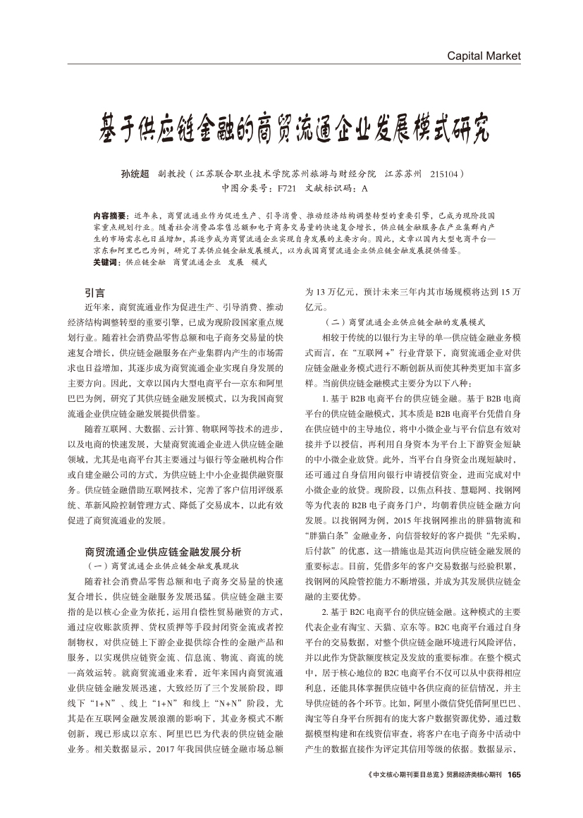 | 基于供应链金融的商贸流通企业发展模式研究 |