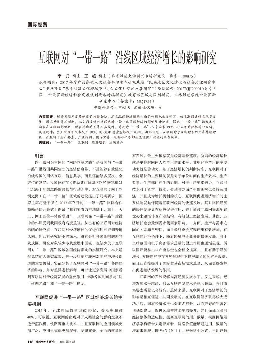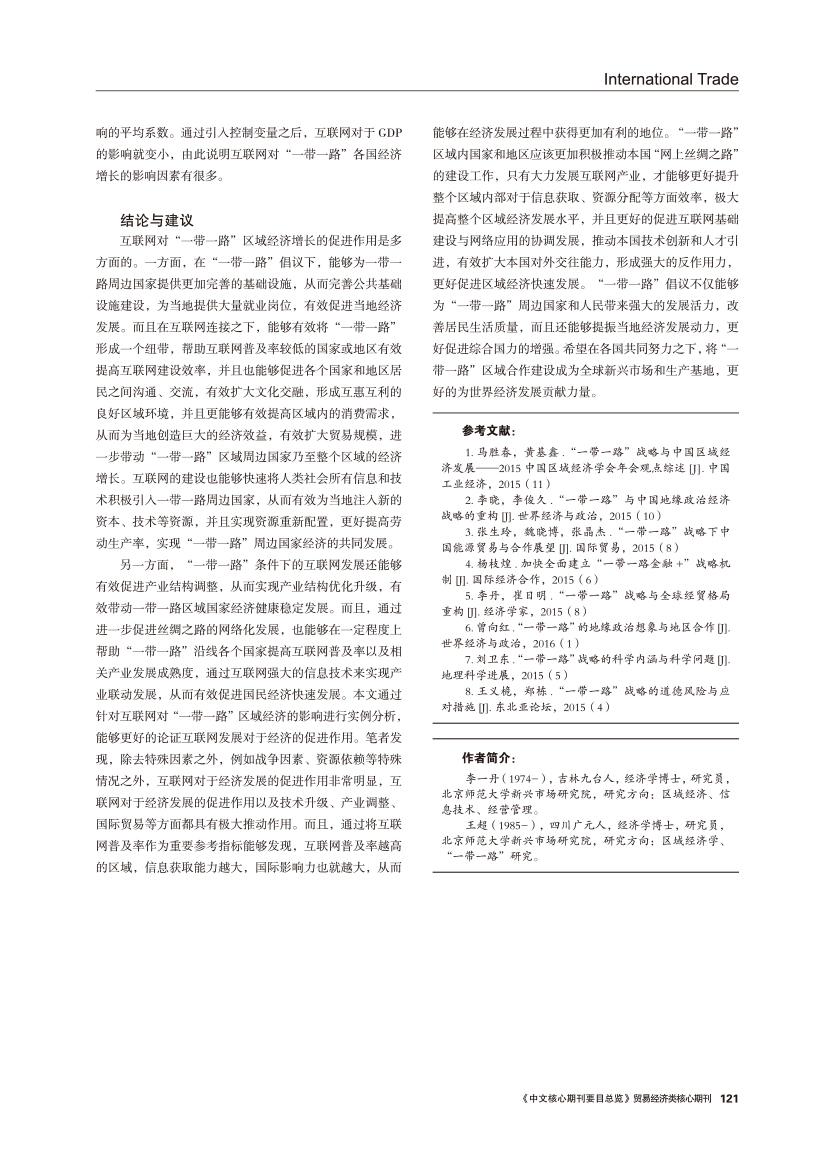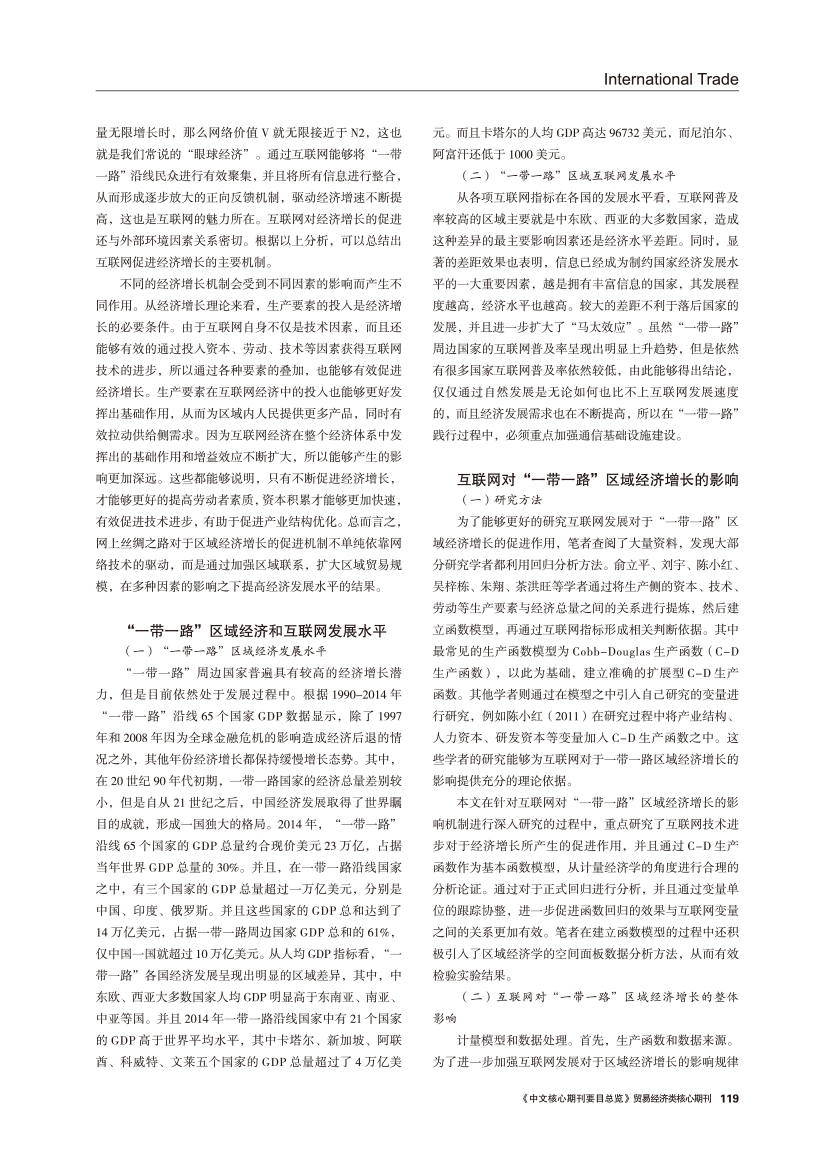 | 互联网对“一带一路”沿线区域经济增长的影响研究 |