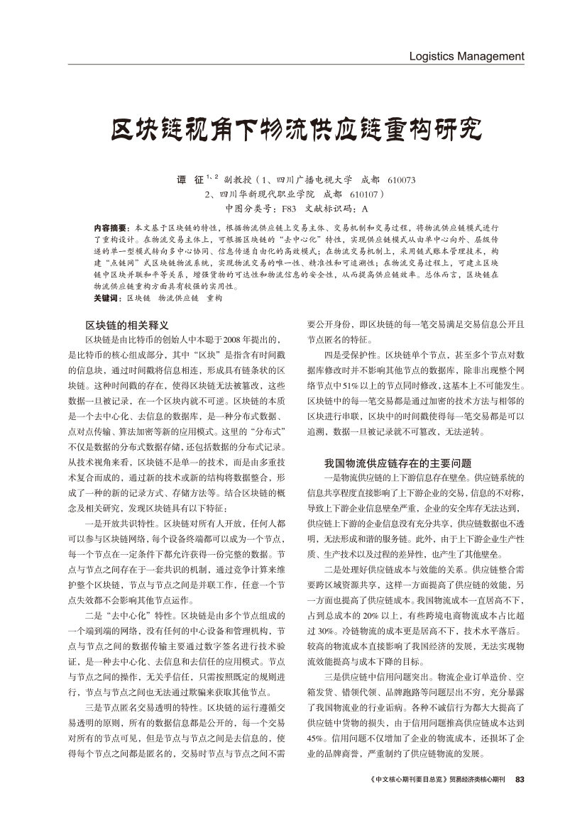 | 区块链视角下物流供应链重构研究 |