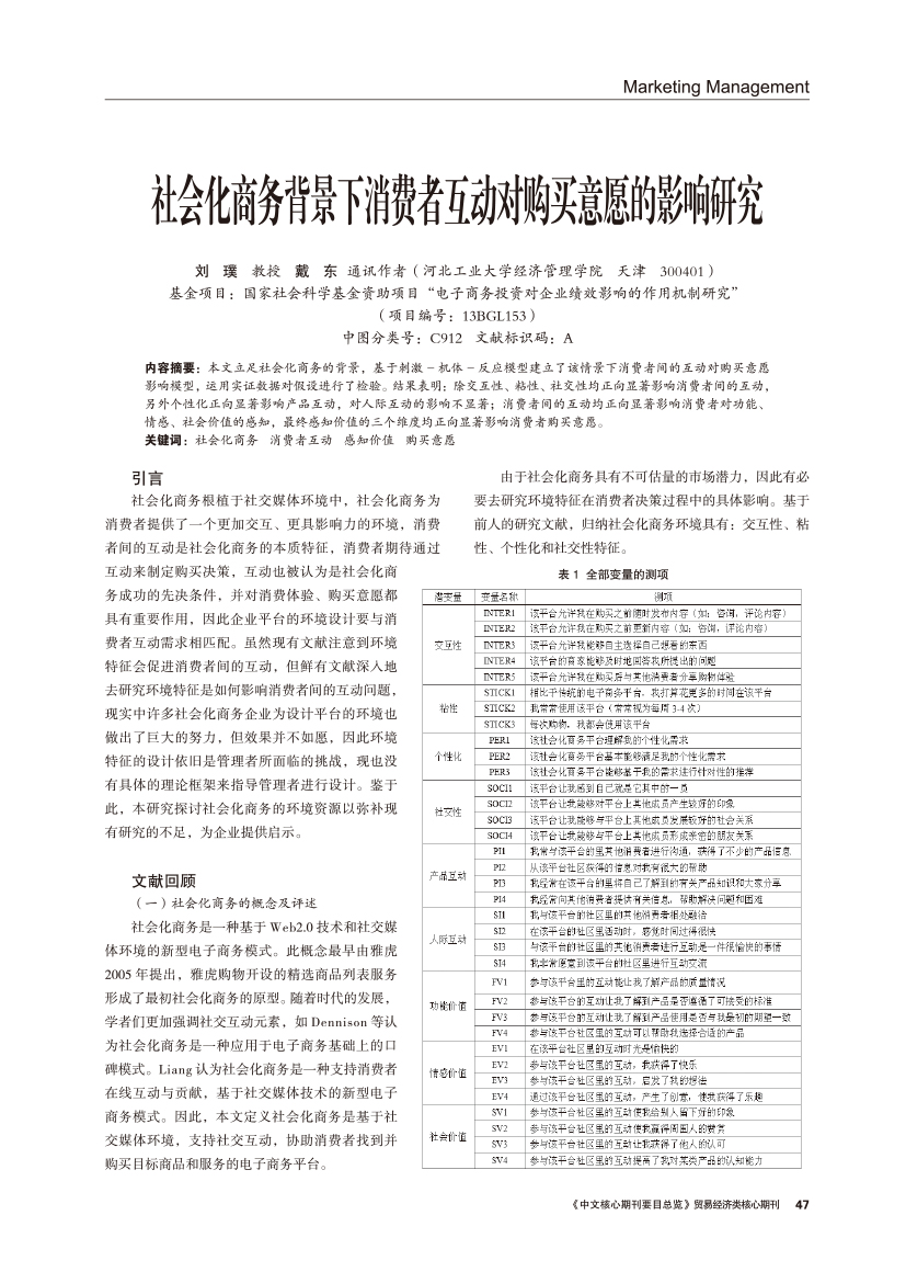 | 社会化商务背景下消费者互动对购买意愿的影响研究 |