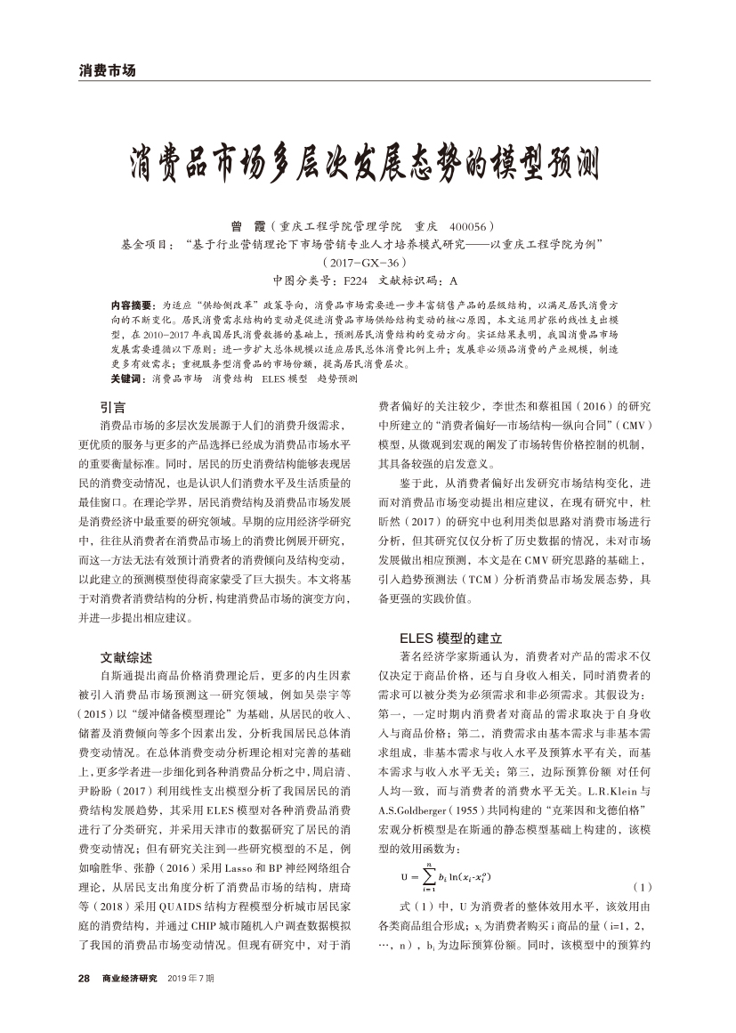 | 消费品市场多层次发展态势的模型预测 |