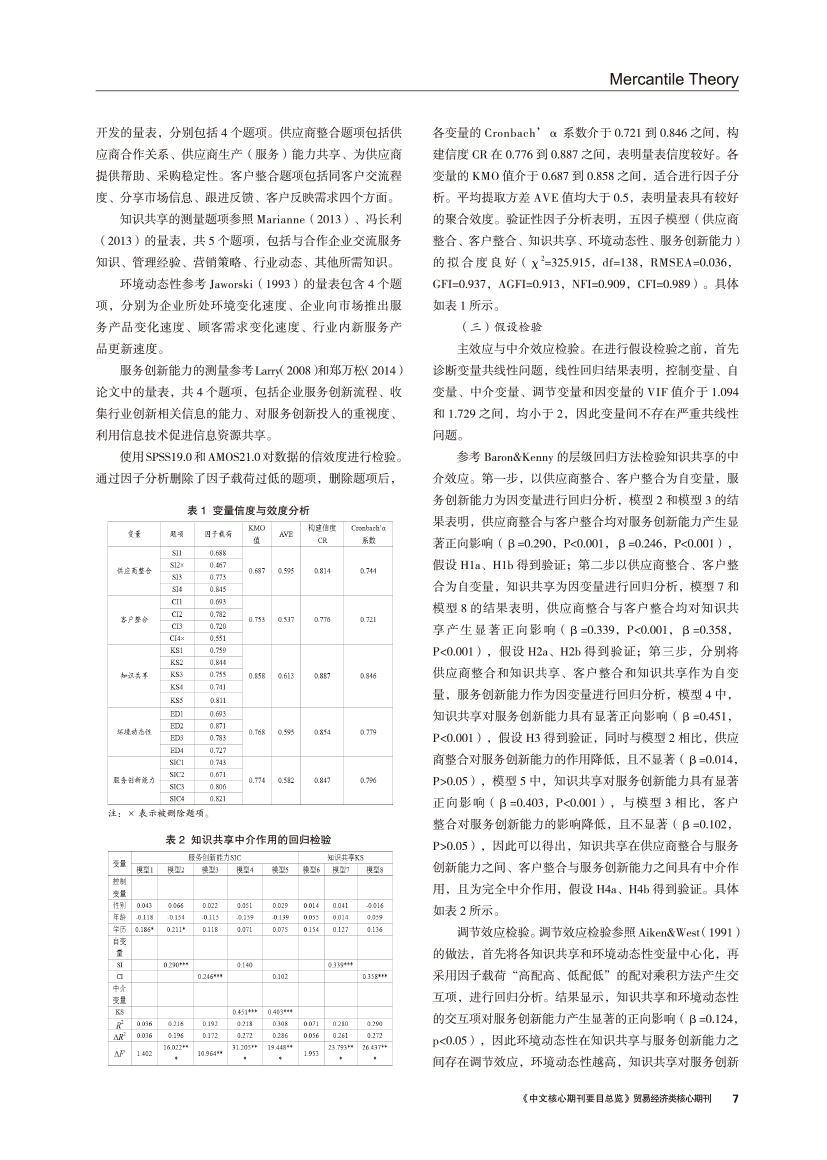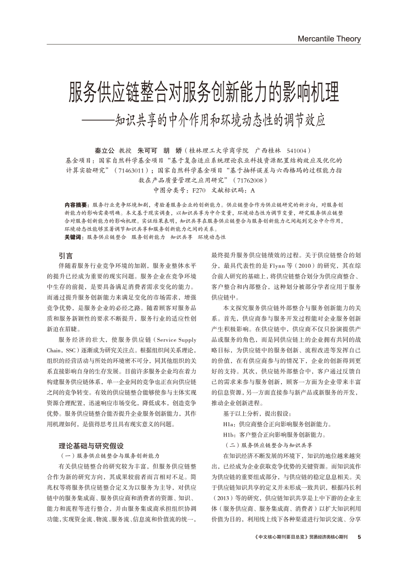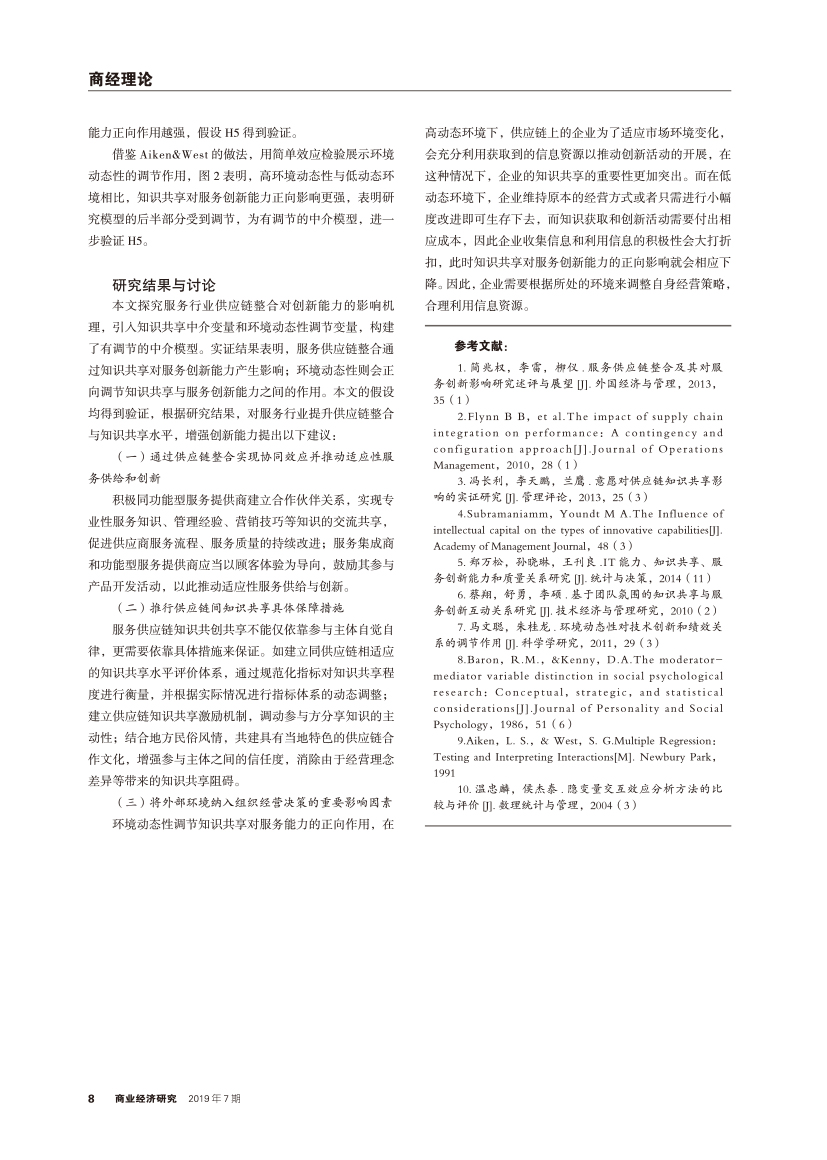 | 服务供应链整合对服务创新能力的影响机理 —— 知识共享的中介作用和环境动态性的调节效应 |