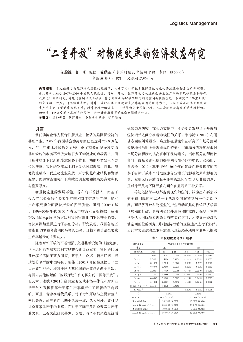 | “二重开放”对物流效率的经济效应研究 |