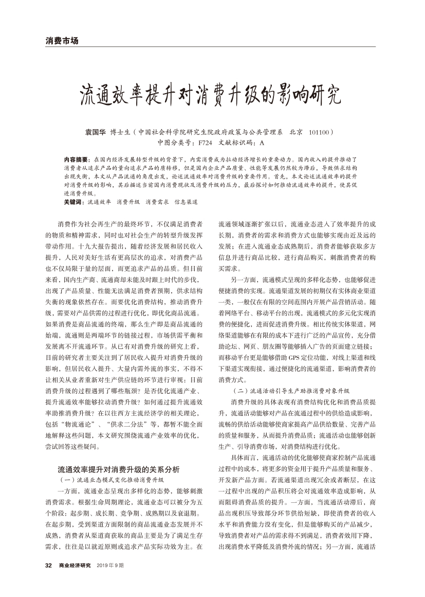 | 流通效率提升对消费升级的影响研究 |