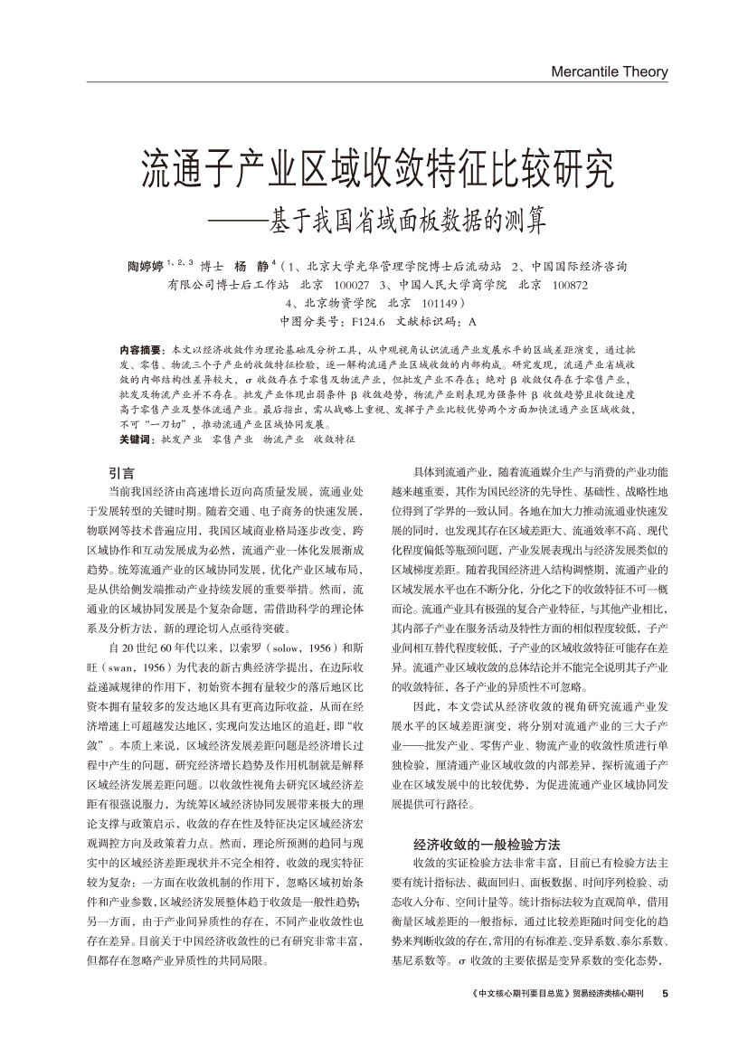| 流通子产业区域收敛特征比较研究 —— 基于我国省域面板数据的测算 |
