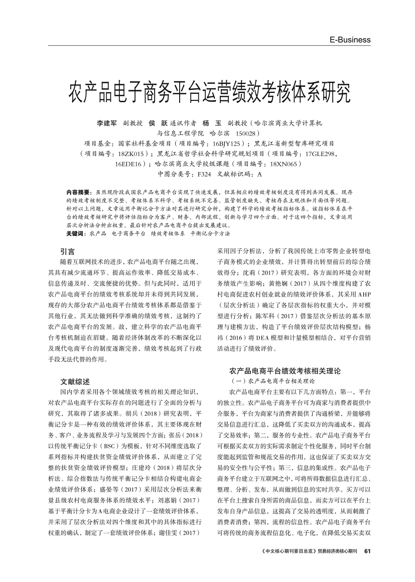| 农产品电子商务平台运营绩效考核体系研究 |
