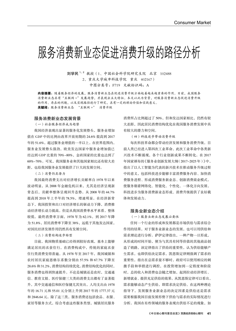 | 服务消费新业态促进消费升级的路径分析 |