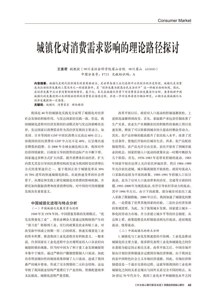 | 城镇化对消费需求影响的理论路径探讨 |