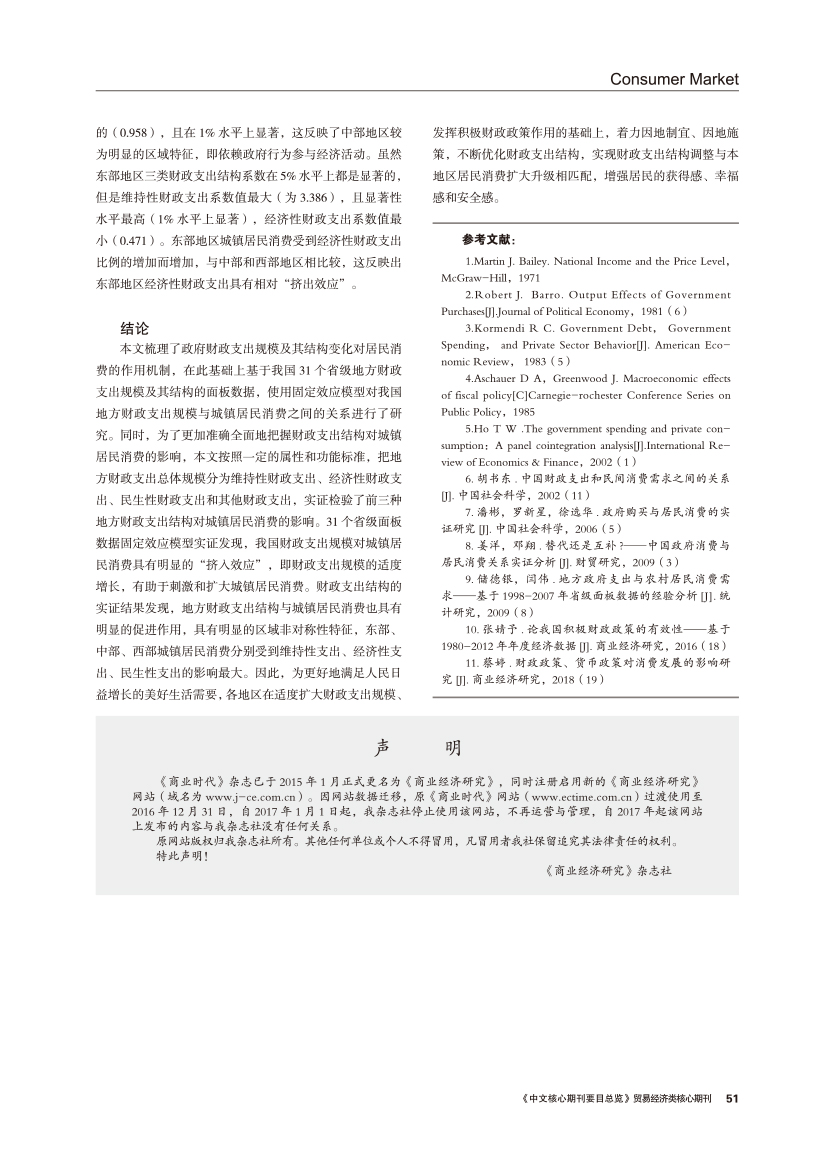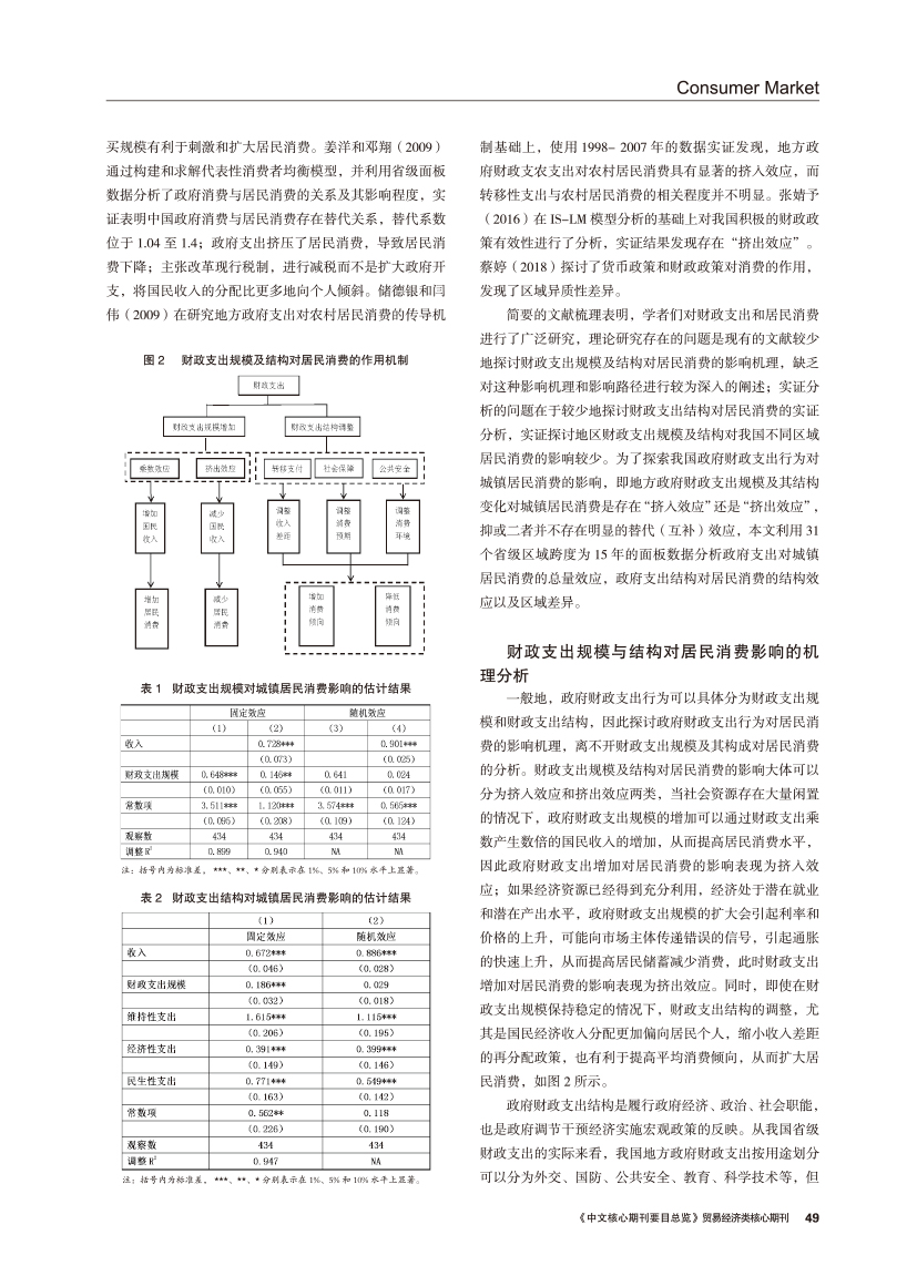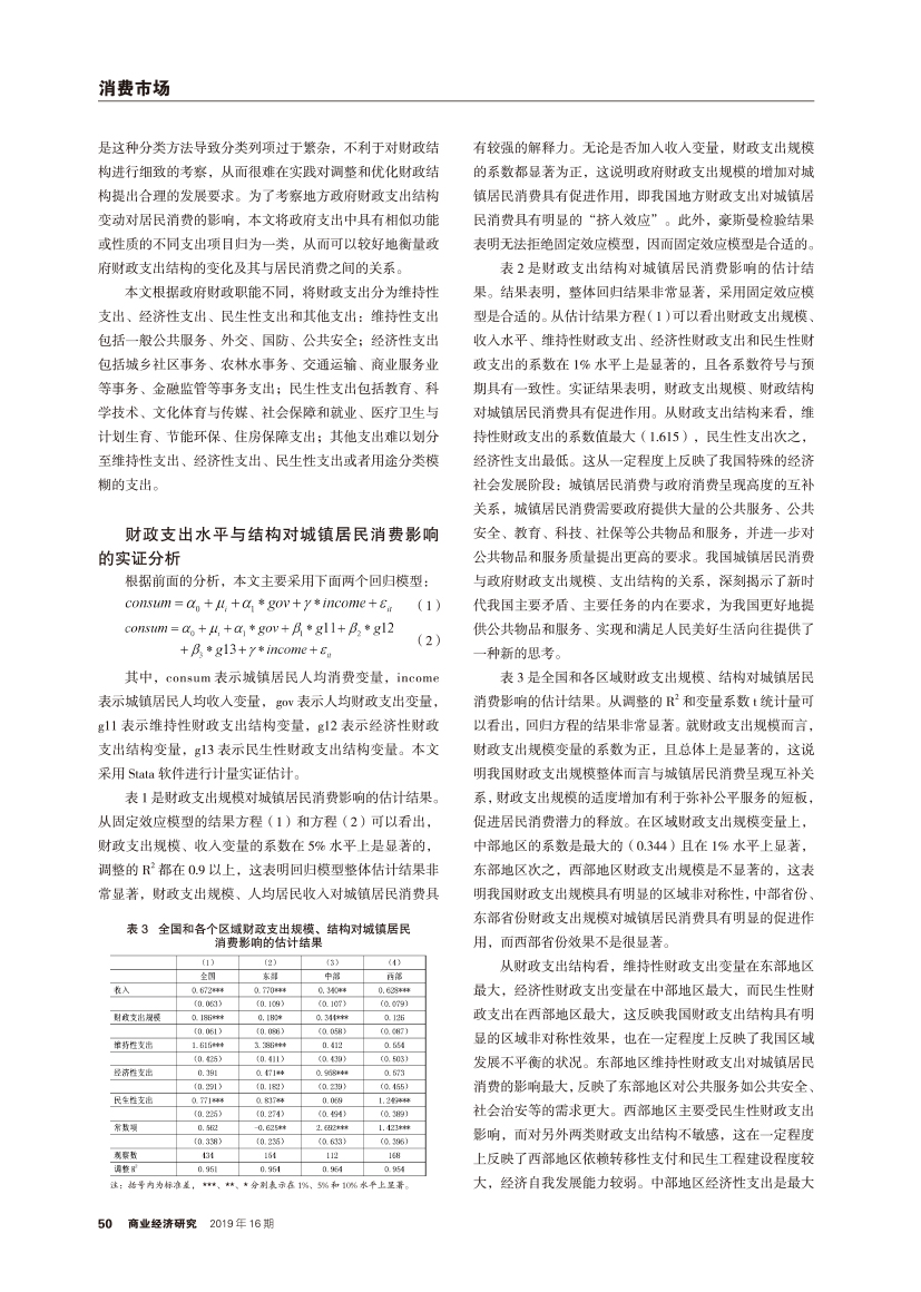 | 地方财政支出规模与支出结构对城镇居民消费的影响 —— 基于省级面板数据的实证 |