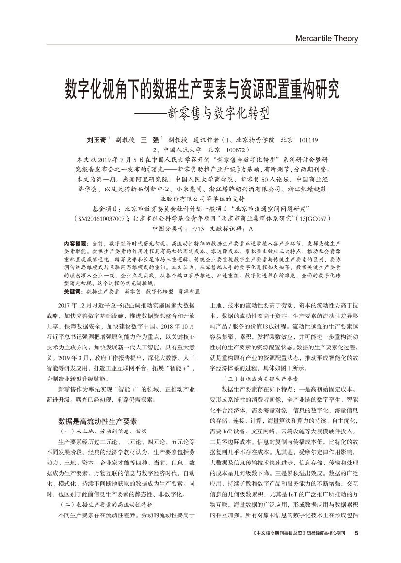 | 数字化视角下的数据生产要素与资源配置重构研究 —— 新零售与数字化转型 |