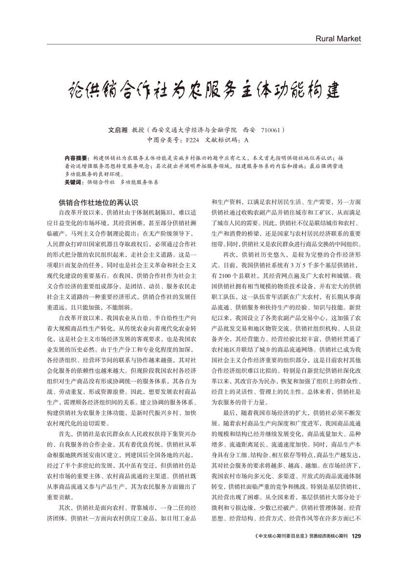 | 论供销合作社为农服务主体功能构建 |