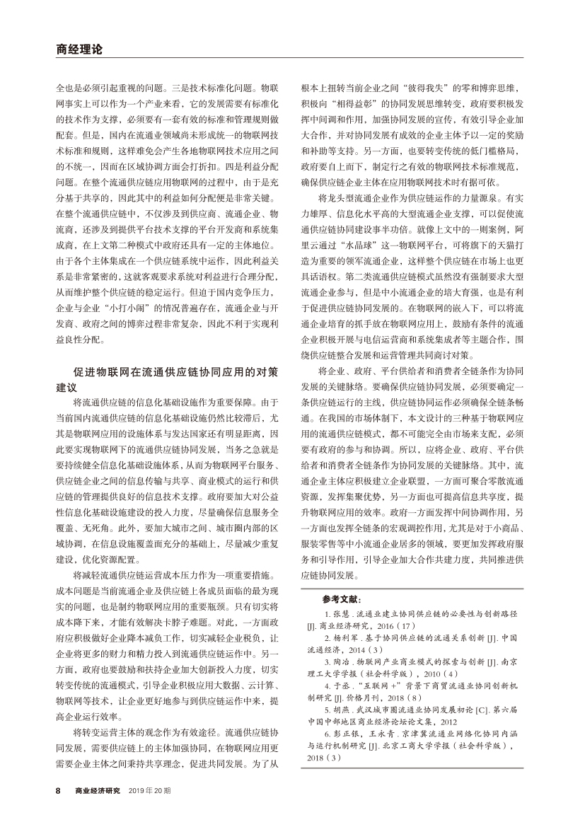 | 基于物联网的我国流通供应链协同模式及政策建议 |