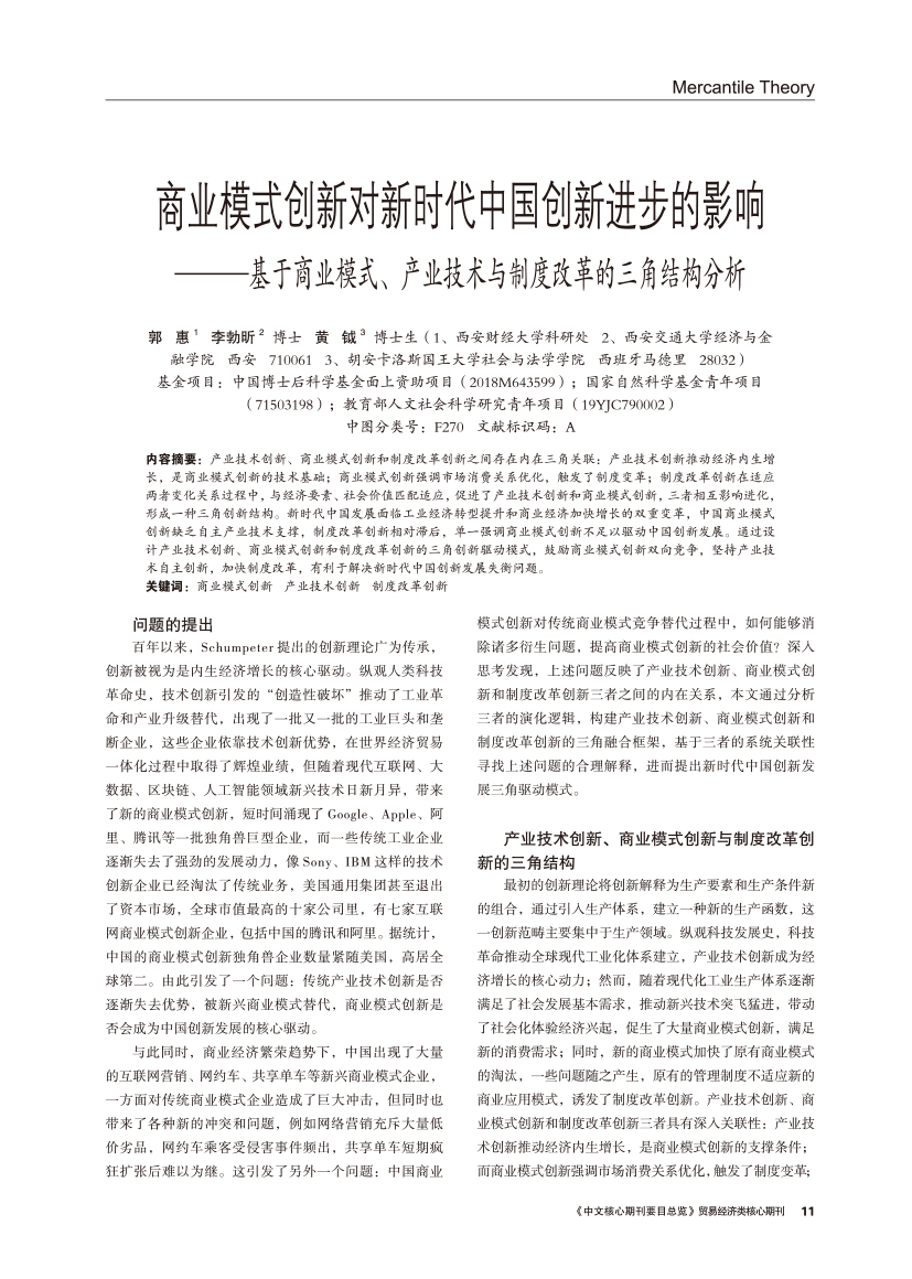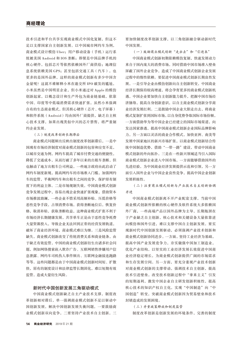 | 商业模式创新对新时代中国创新进步的影响 —— 基于商业模式、产业技术与制度改革的三角结构分析 |