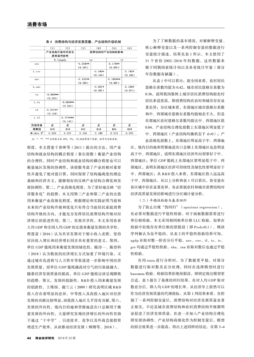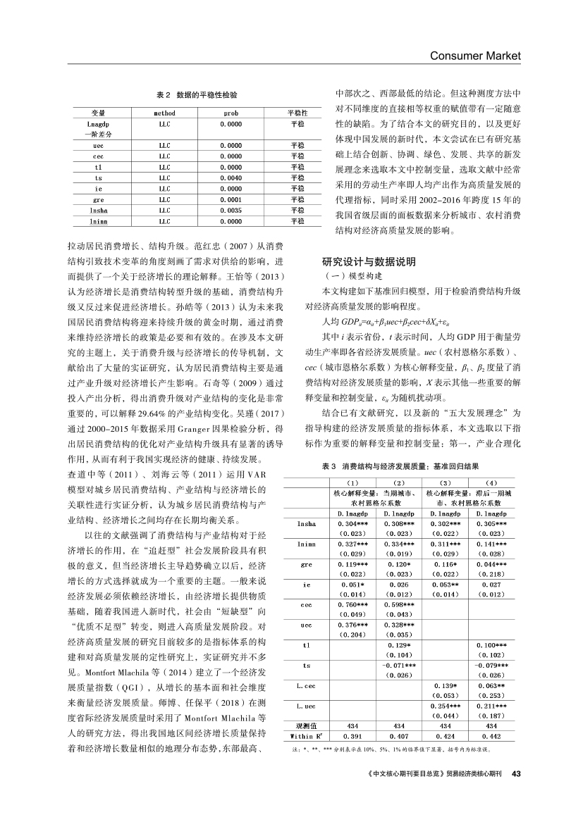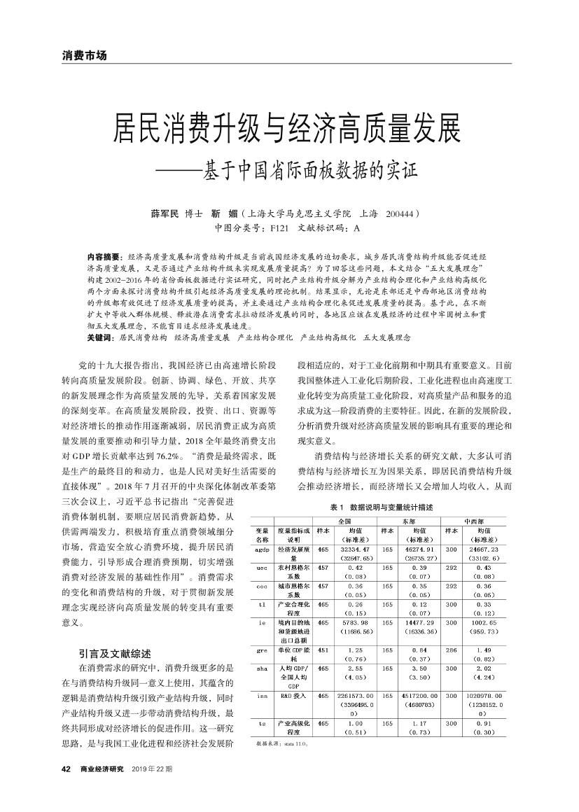 | 居民消费升级与经济高质量发展 —— 基于中国省际面板数据的实证 |