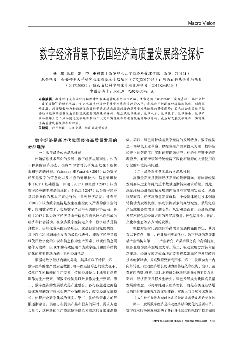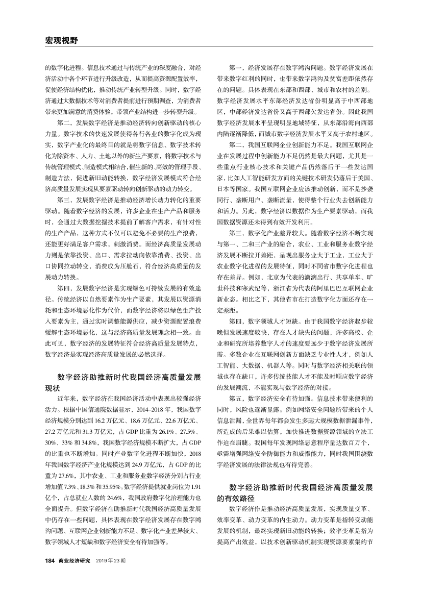 | 数字经济背景下我国经济高质量发展路径探析 |