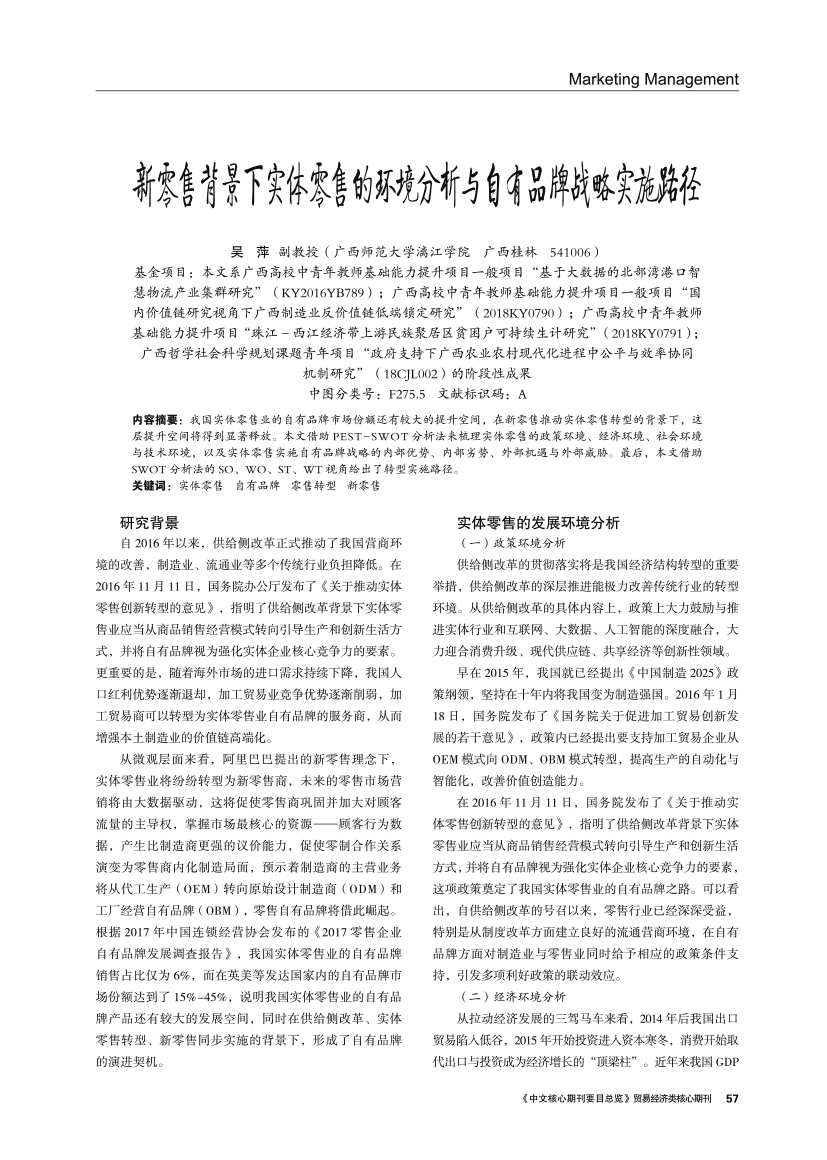 | 新零售背景下实体零售的环境分析与自有品牌战略实施路径 |