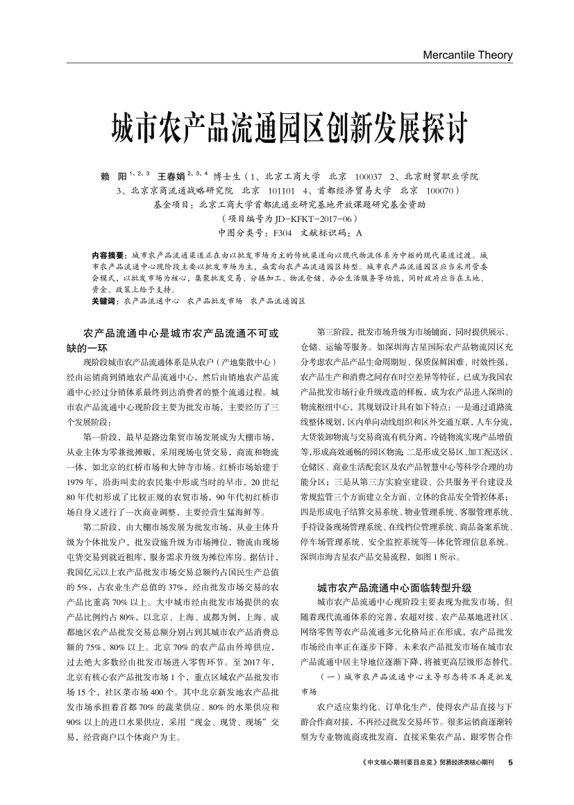 | 城市农产品流通园区创新发展探讨 |
