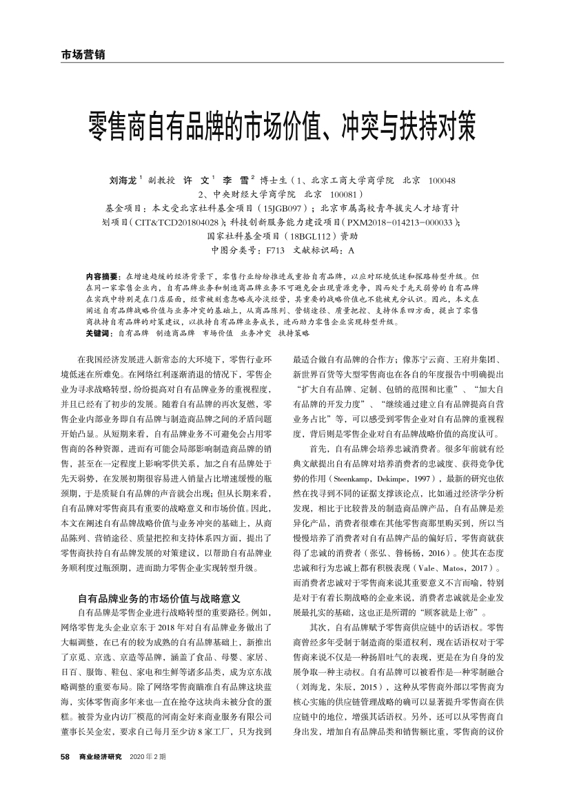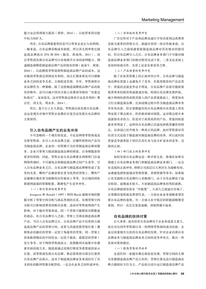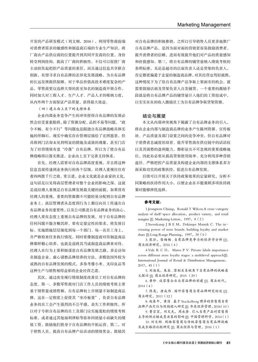 | 零售商自有品牌的市场价值、冲突与扶持对策 |