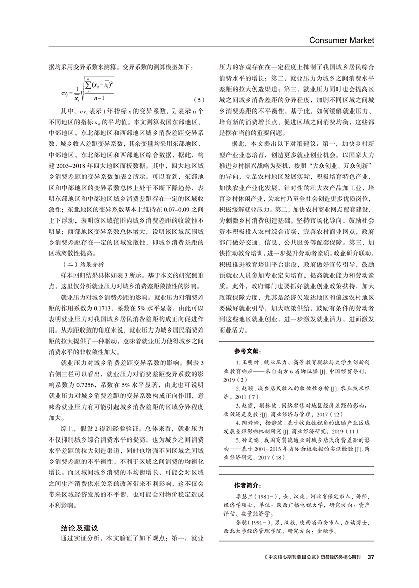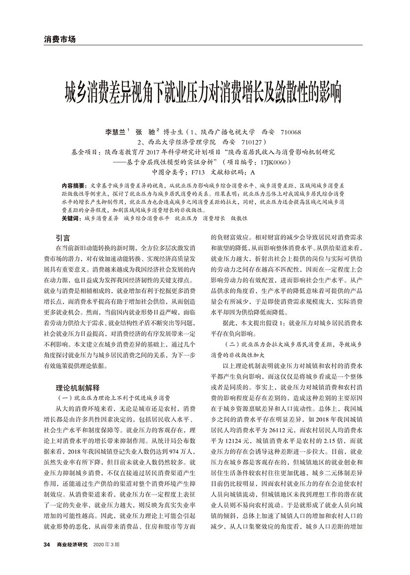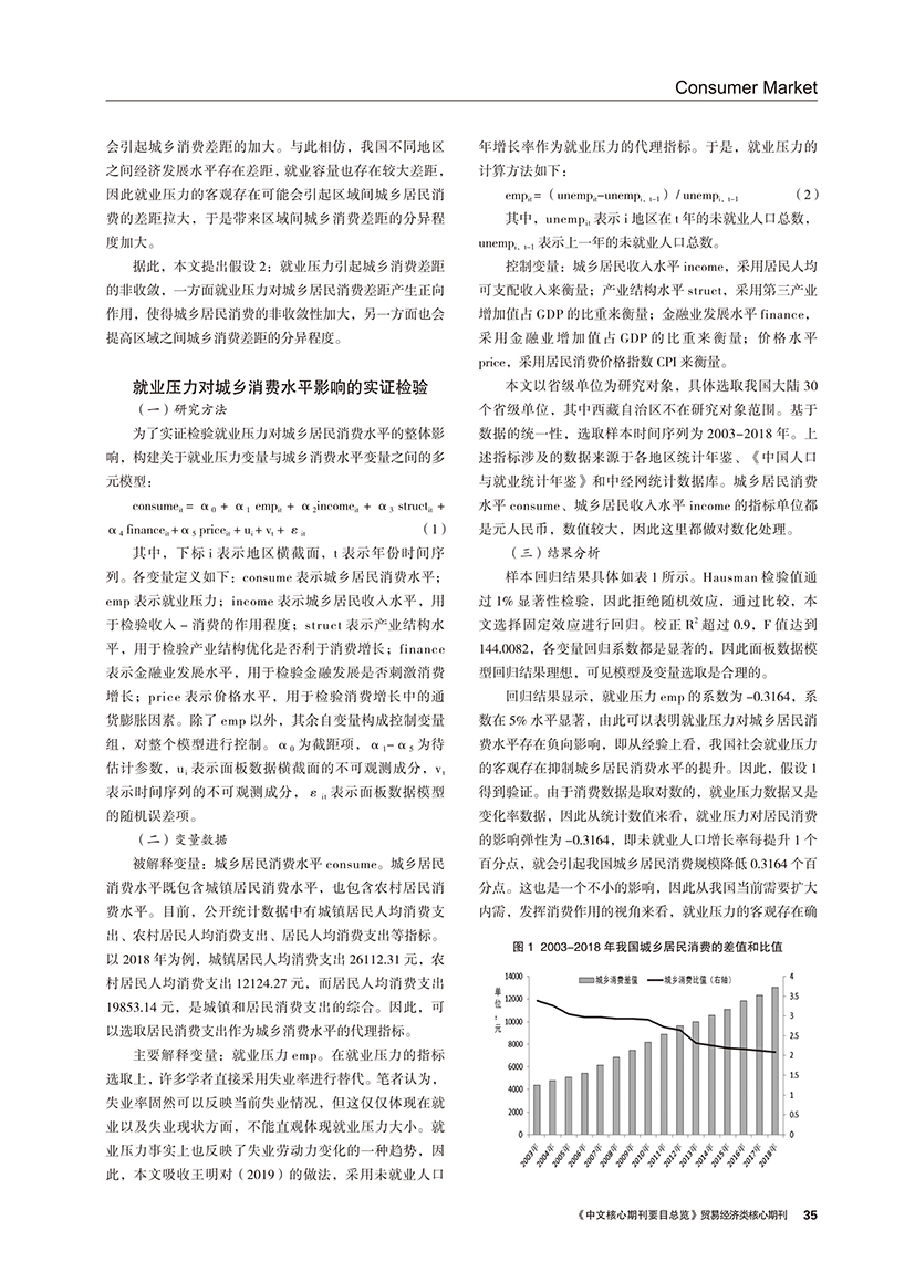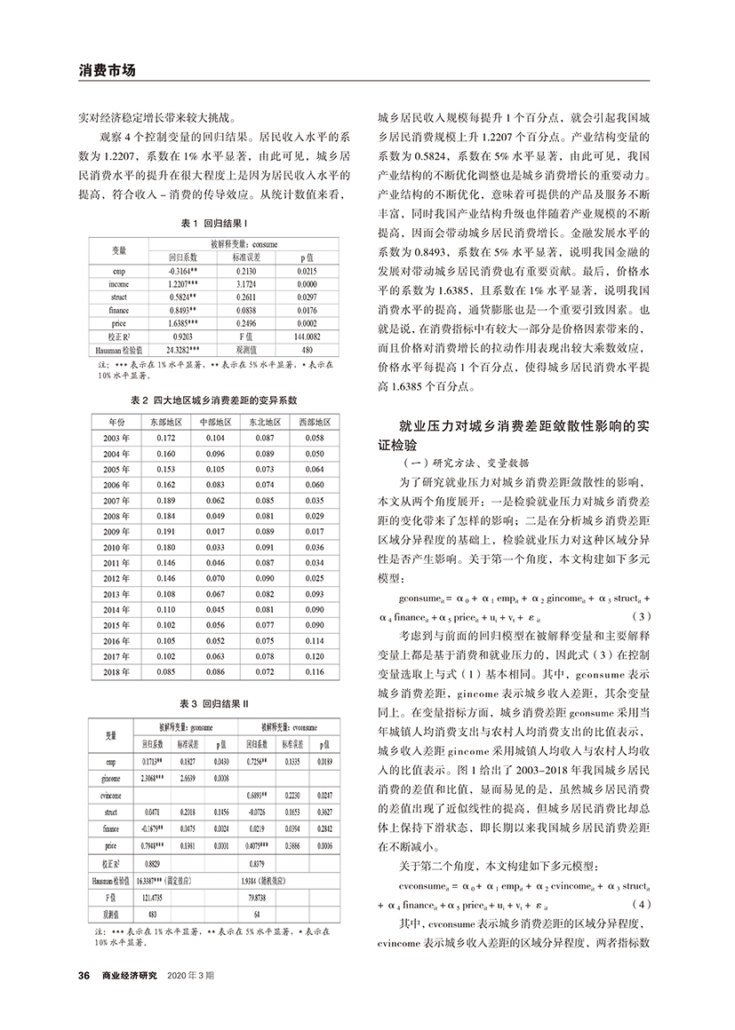 | 城乡消费差异视角下就业压力对消费增长及敛散性的影响 |